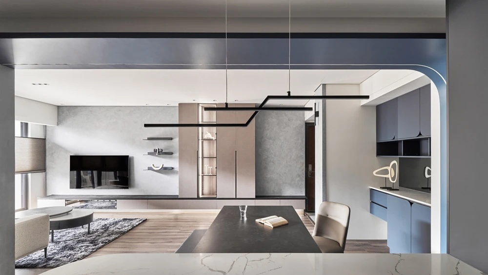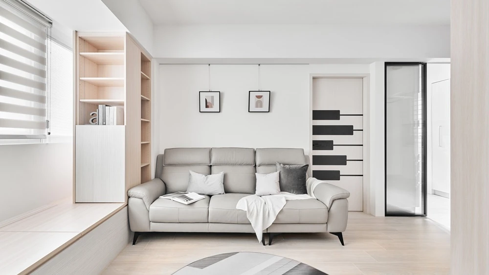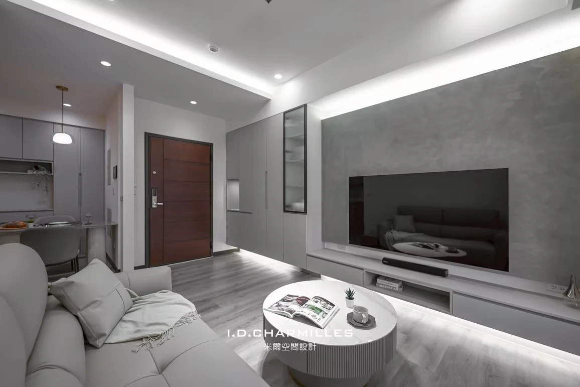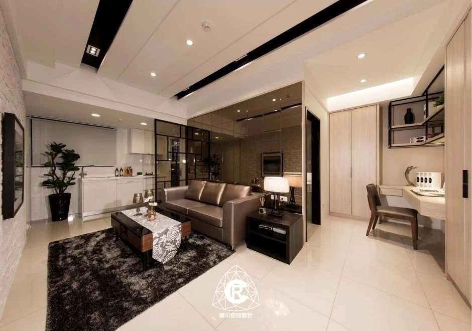 在有限的坪數裡,也能擁有最剛好的質感生活。 以沉穩墨色鋪陳整體基調,搭配柔霧光線與溫暖棕色沙發,打造出安靜卻不冷淡、內斂卻不壓迫的療癒客廳。 極簡線條、隱藏式收納與低調燈帶