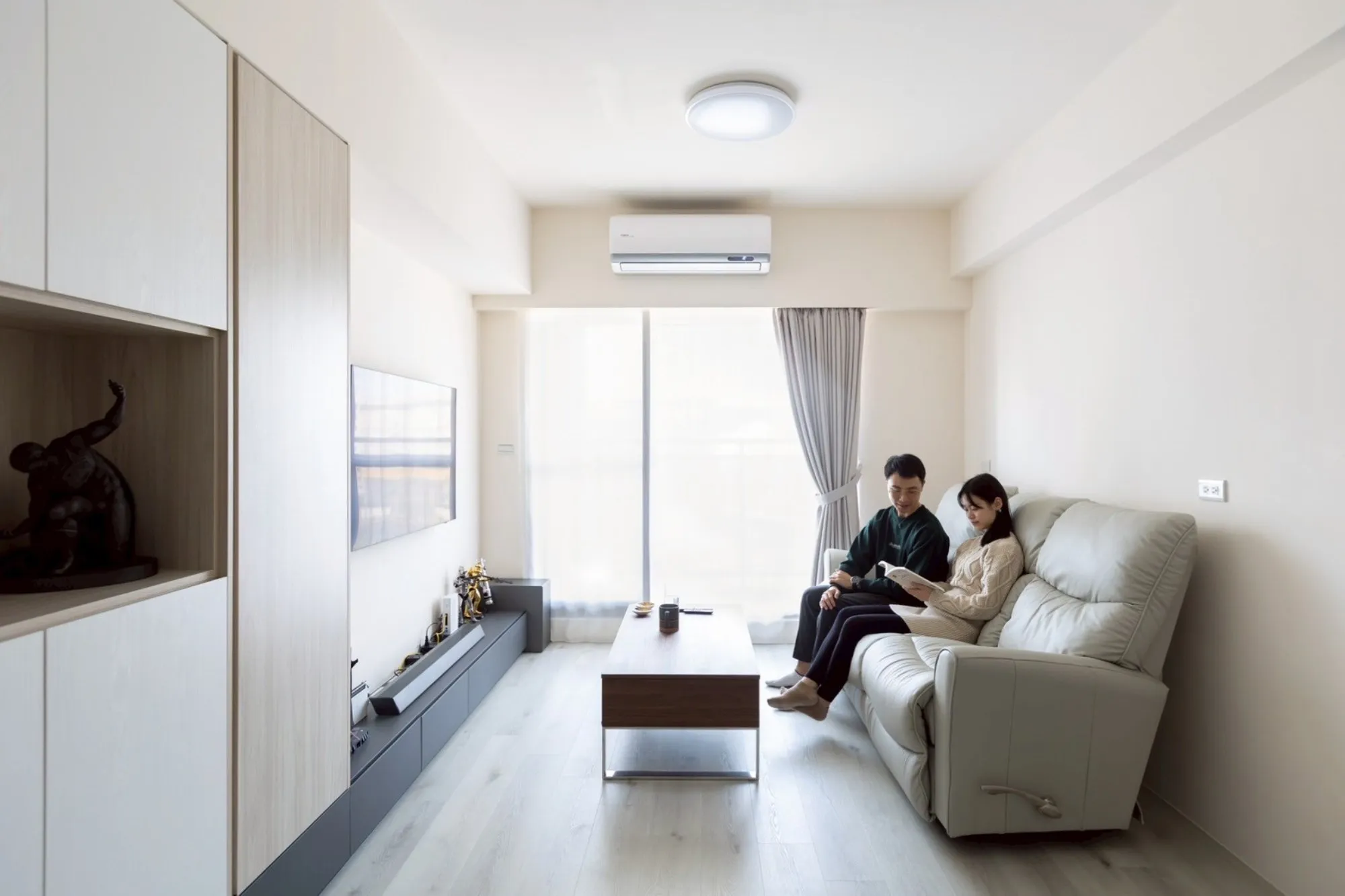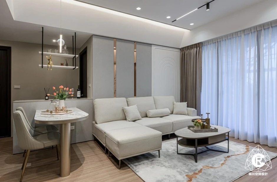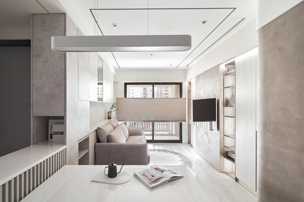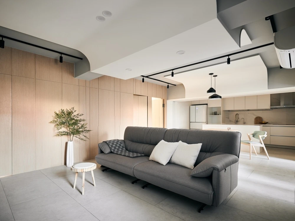 電視以極簡立柱支撐,視線零阻擋;客廳與餐廚自然串聯,空間感完全放大。 午後的光灑落在木地板上,連追劇都變成一種儀式感。 🌿 質感小宅的日常,就是這麼簡單又迷人