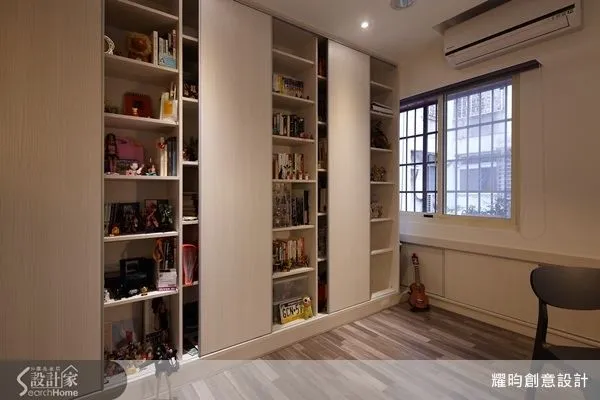 哥哥的房子稍大,收集的是較大型的公仔,因此,蔡設計師設計了大型的展示收納櫃,方便隨時更換展示品。設計師以色彩較獨特的灰牆,展示年輕人勇於嘗試的一面,日後更換色彩轉換氣氛也很容易。書房有著大型書櫃,小公仔可以放在這裡,拉門門片的設計,可以隨心展示任何一個區塊。既可讀書也能成為客房,有了小孩也能隨時改裝。
