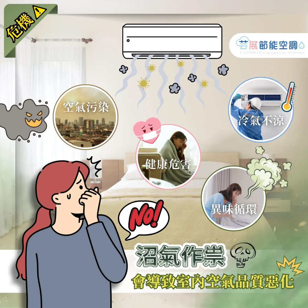 • 長期沼氣環境可能損害冷氣蒸發器與機件壽命,導致漏冷媒近而不冷