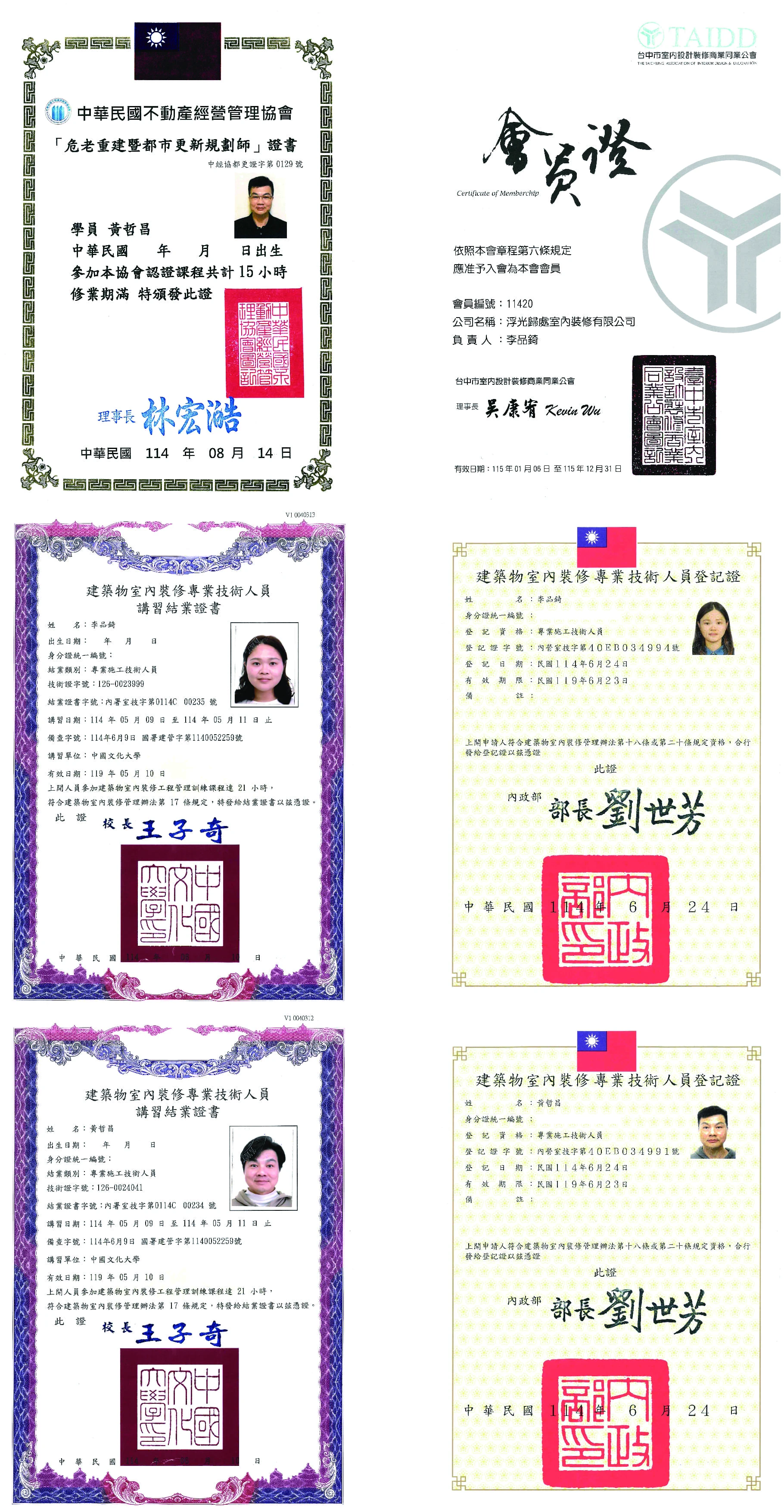 國土署合法登記業者:我們不只是設計工作室,更是政府認證的「合法室內裝修業」合法驗證。這代表每一分預算、每一項工序,都在國家法規與安全規範的保障之下。