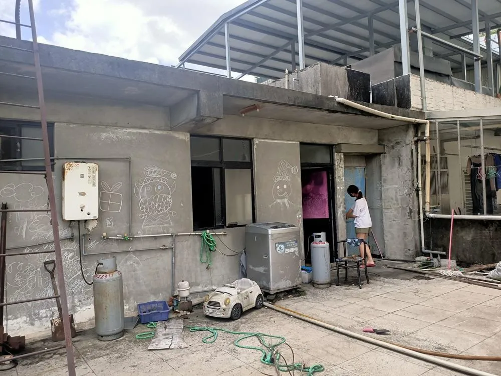 此案位於板橋某市場口人車通行密集地段,即便於週一市場休息日仍人車不斷,除了進出貨動線困難外,外牆及頂樓修繕更添加施工難度,業主曾尋求其他工程公司於現場勘查後,被多次婉拒承接此案工程,本公司承接此案工程