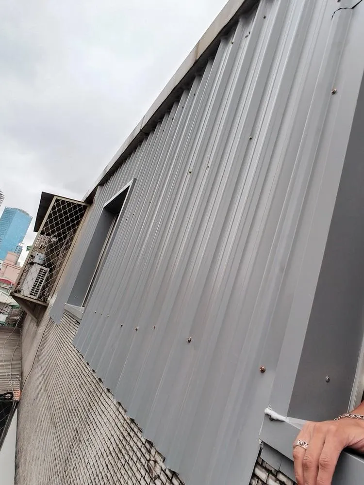 此案位於板橋某市場口人車通行密集地段,即便於週一市場休息日仍人車不斷,除了進出貨動線困難外,外牆及頂樓修繕更添加施工難度,業主曾尋求其他工程公司於現場勘查後,被多次婉拒承接此案工程,本公司承接此案工程,研擬對策,突破現況,順利完工。