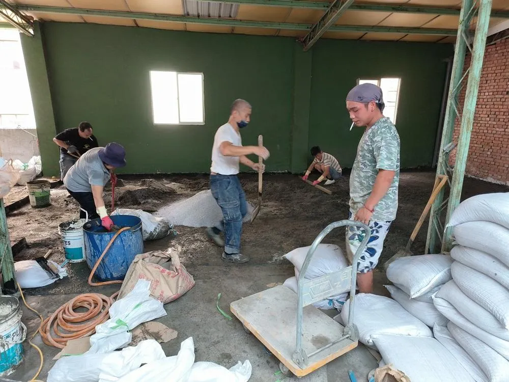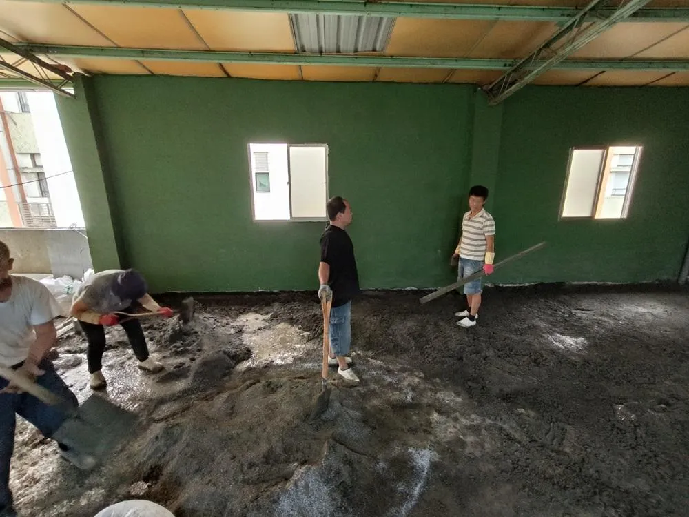 廠辦裝修格局為全磚造施工,材料運送時間冗長,施工過程工廠仍需進行生產,因此施工動線須進行完善保護及圍設作業,配合工廠同步生產下完工。
