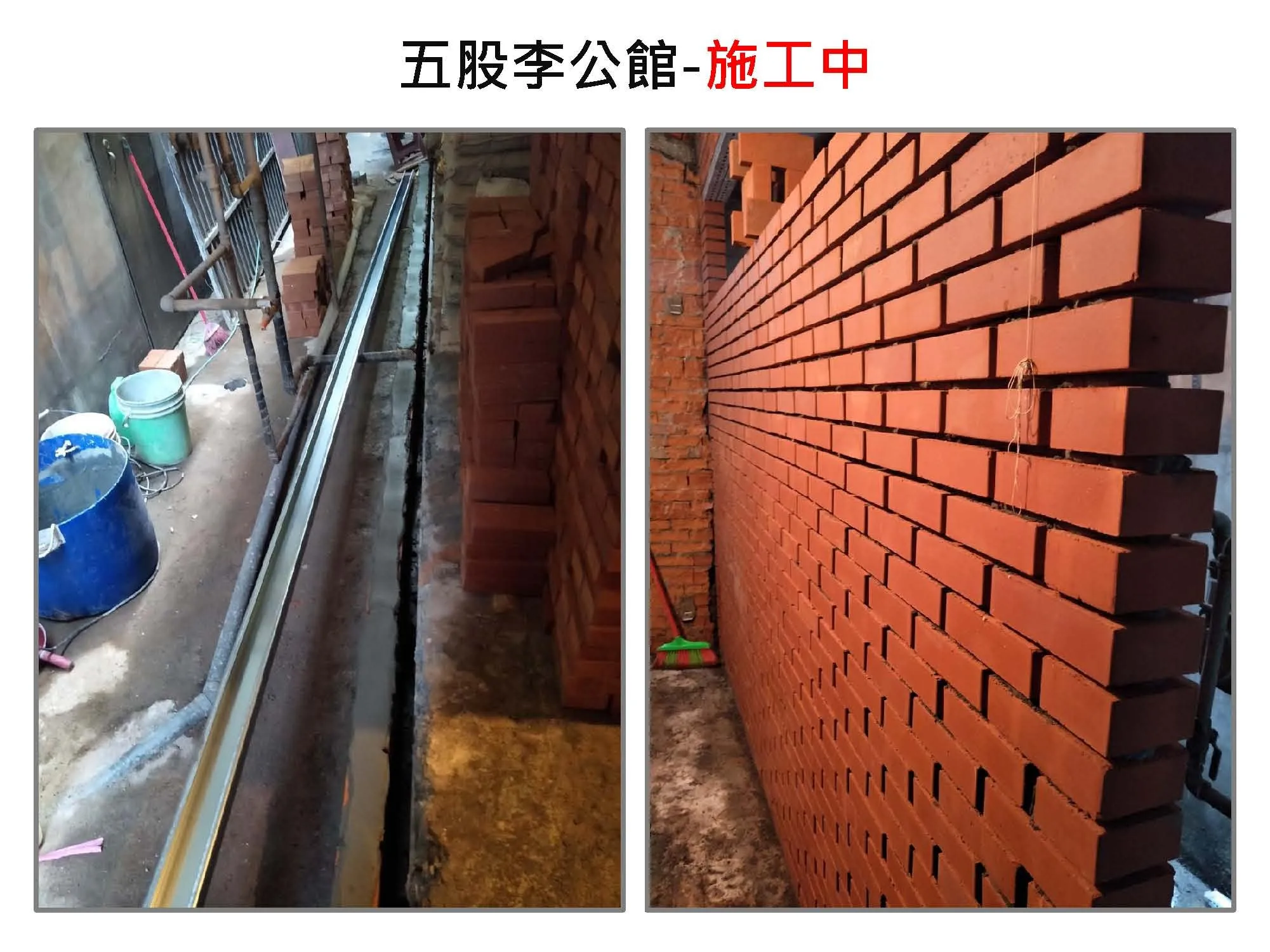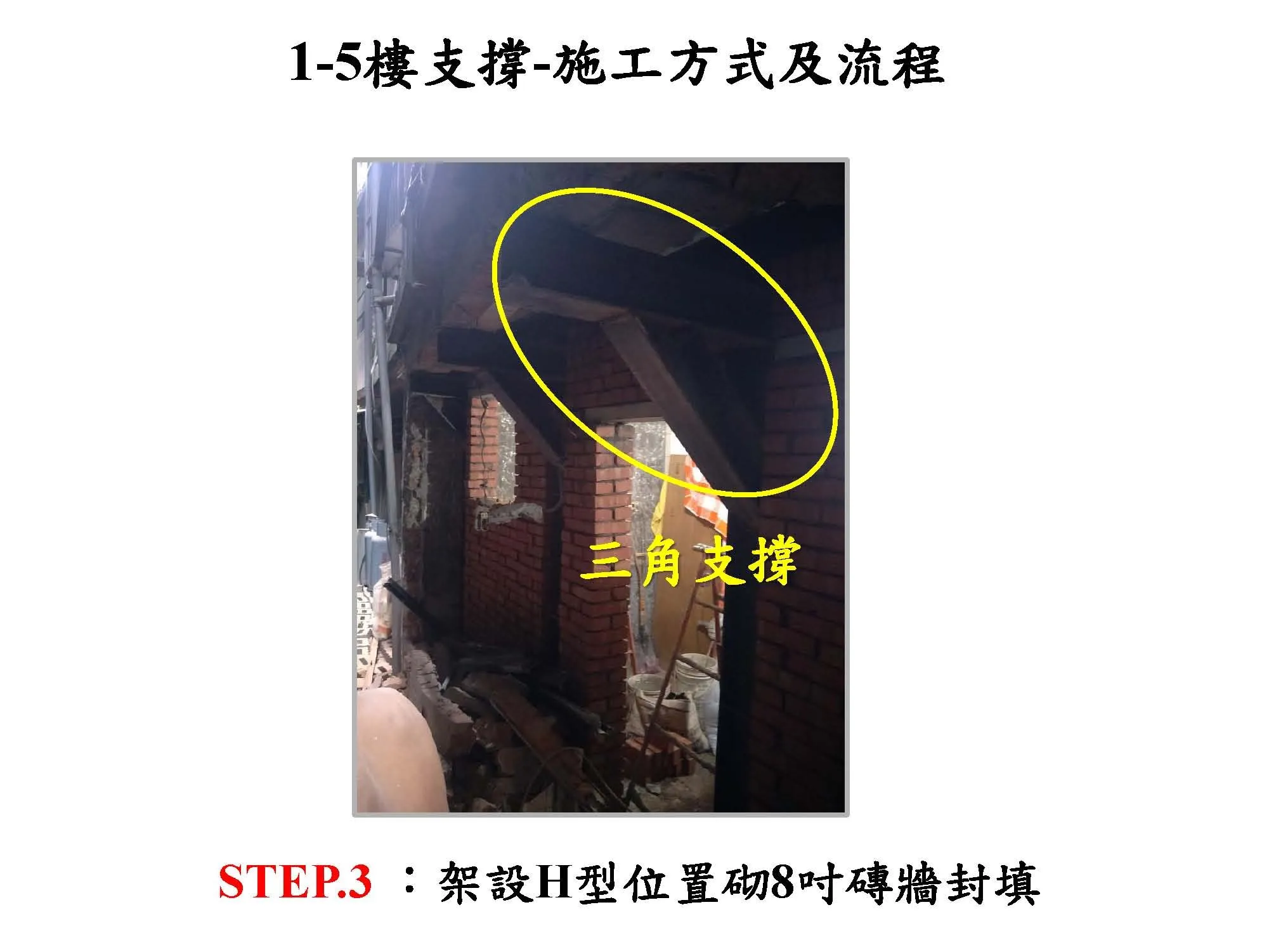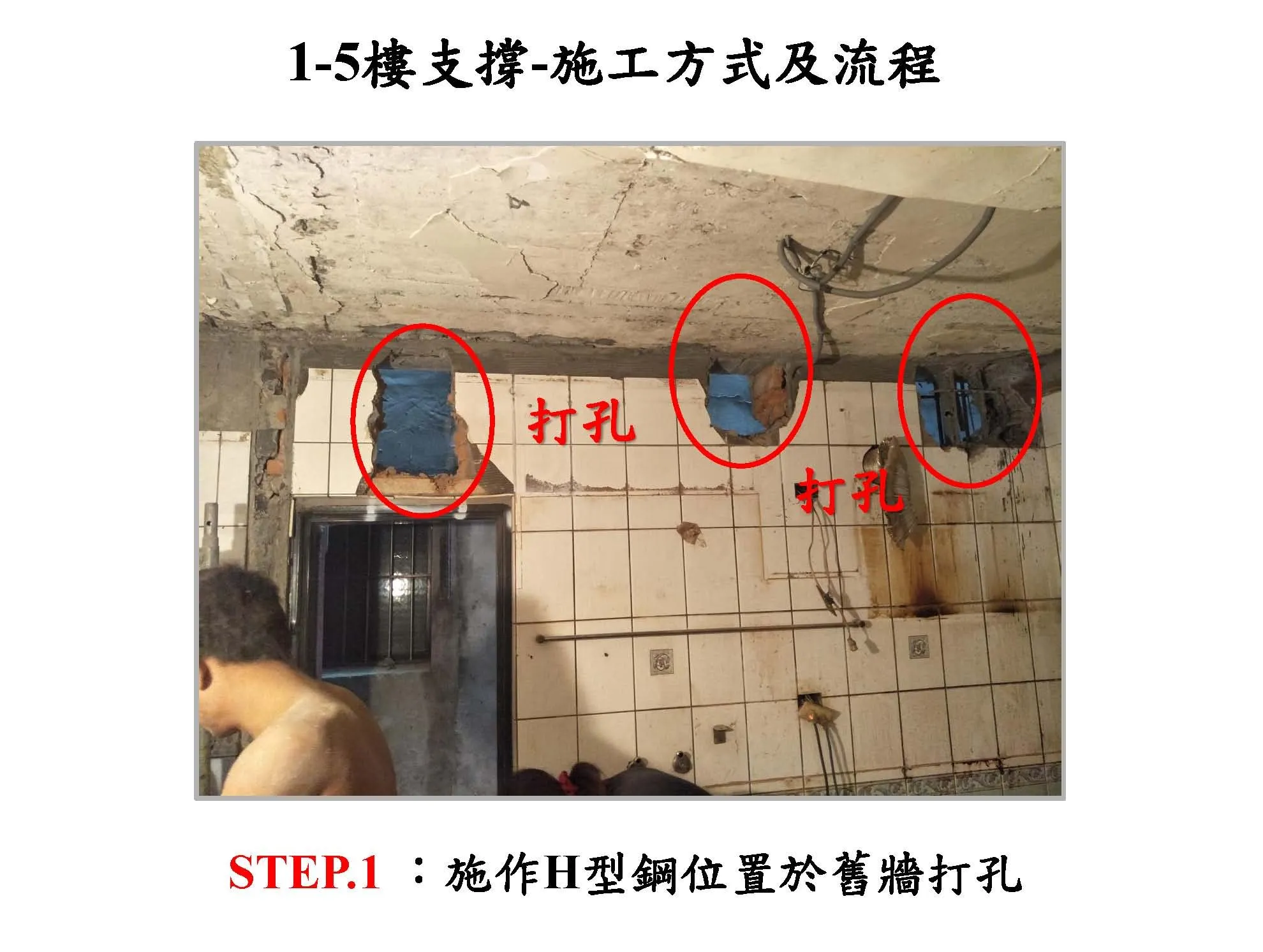 本公司後巷退縮工程施工著重於地樑降挖支撐,預埋H型鋼地樑焊接上部H型鋼,以支撐二樓以上外推結構;由於後巷開挖深度約在80~120公分(排水坡度),如支撐未完善,下水道配管開挖過程恐有下陷或既有牆面結構開裂問題。