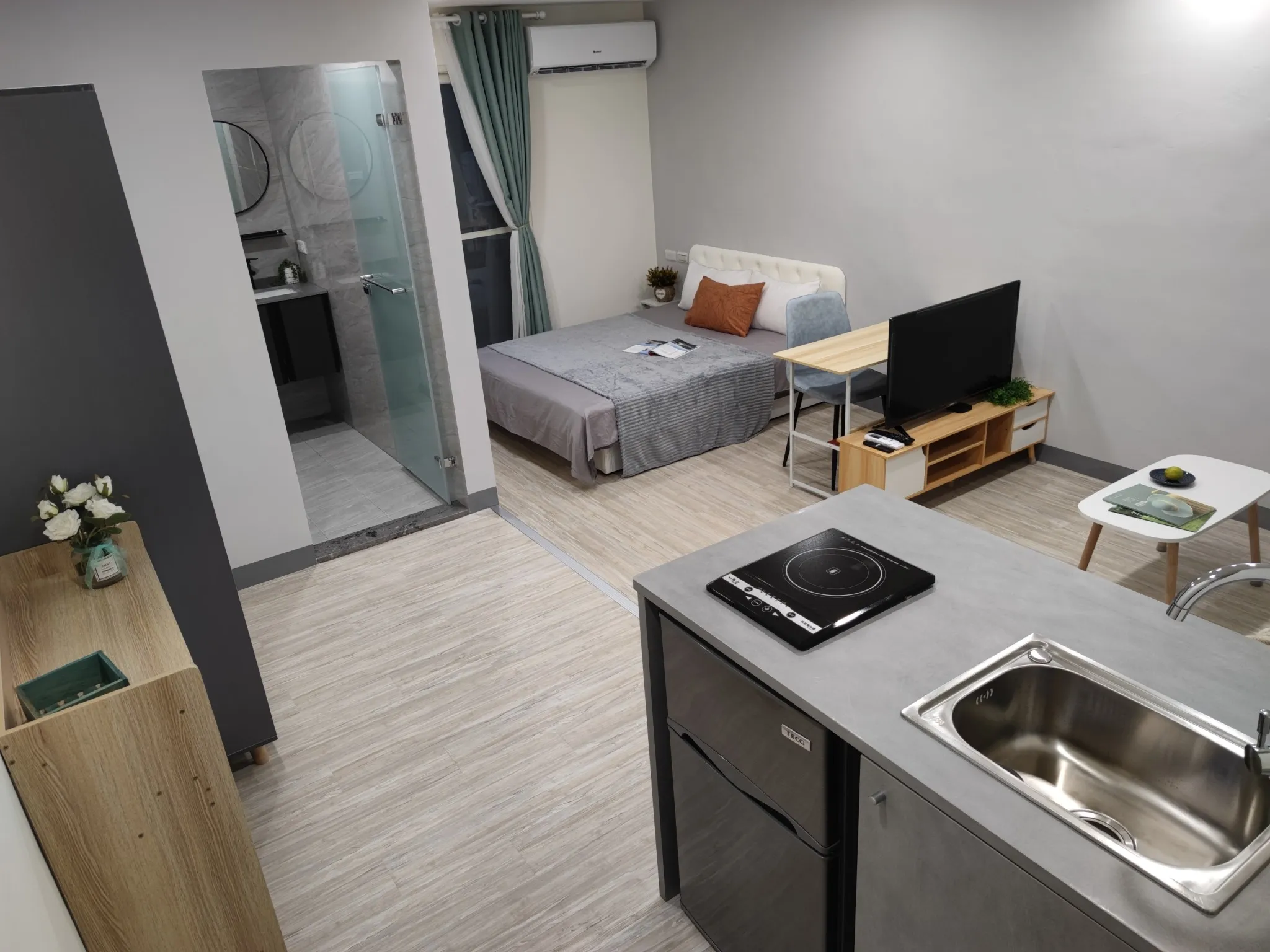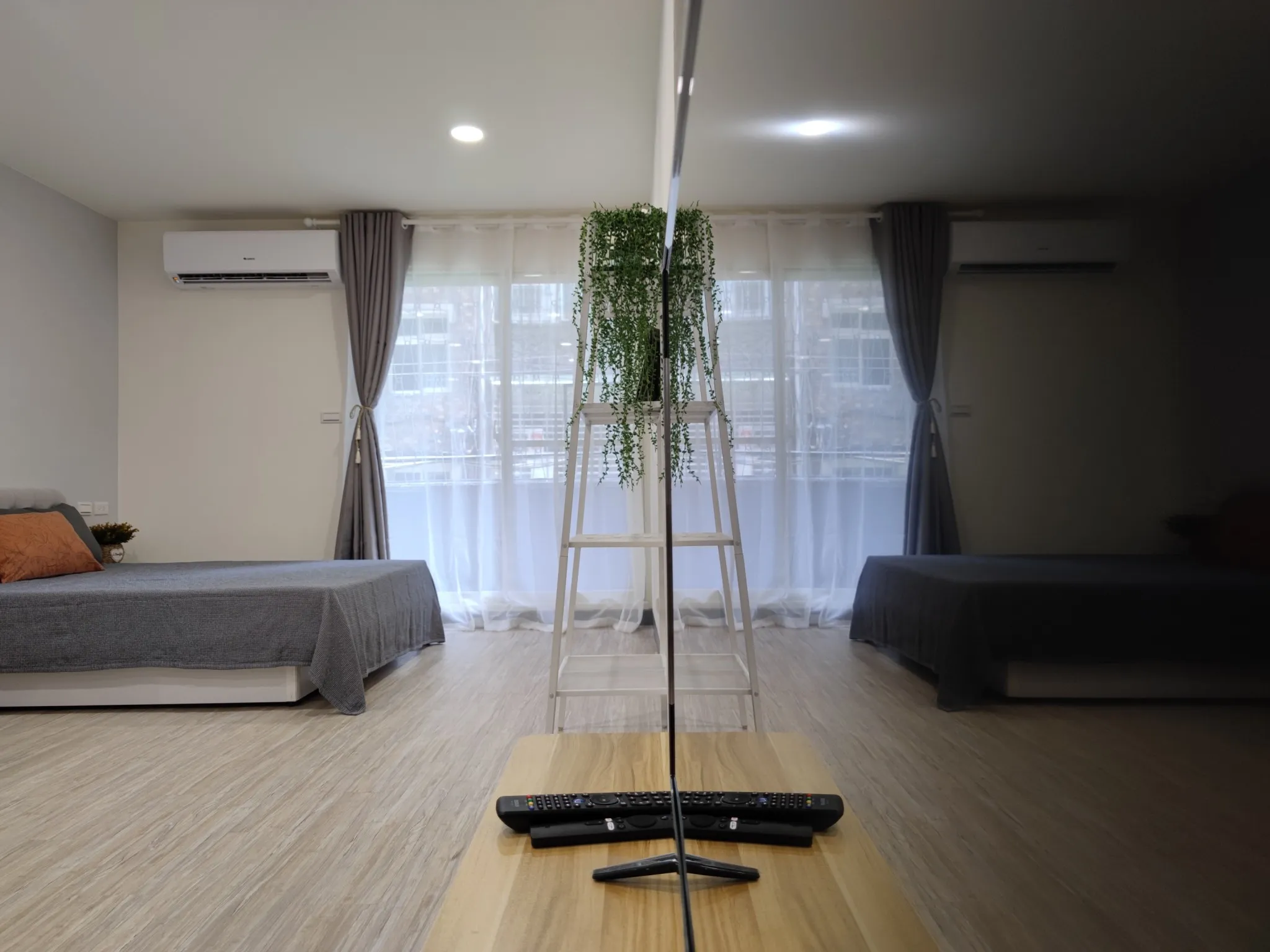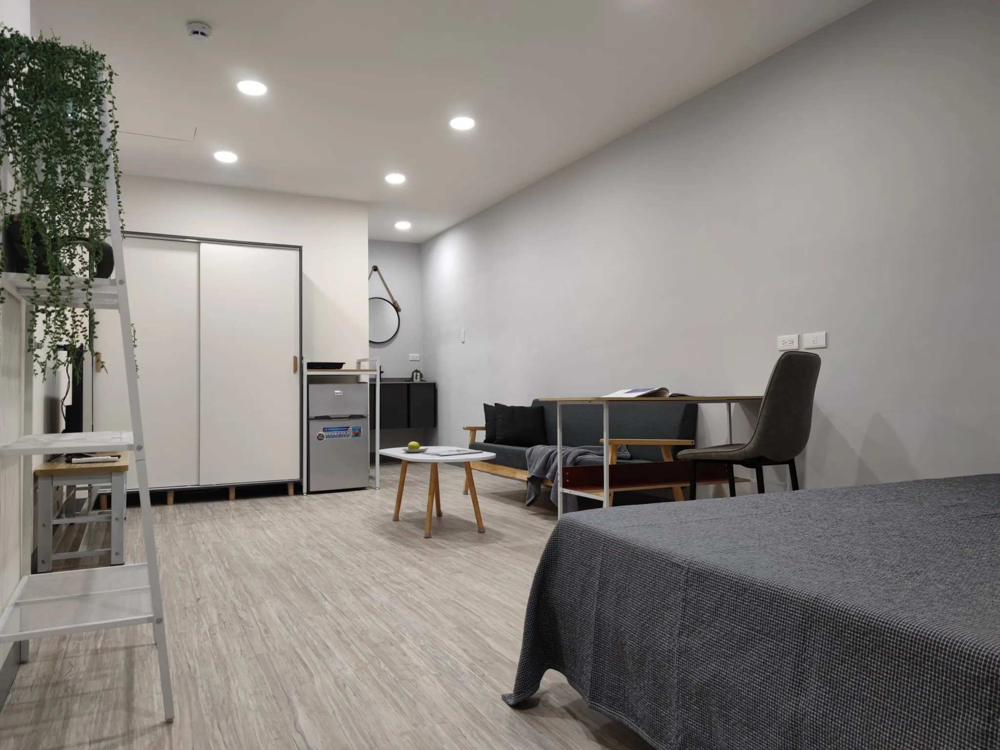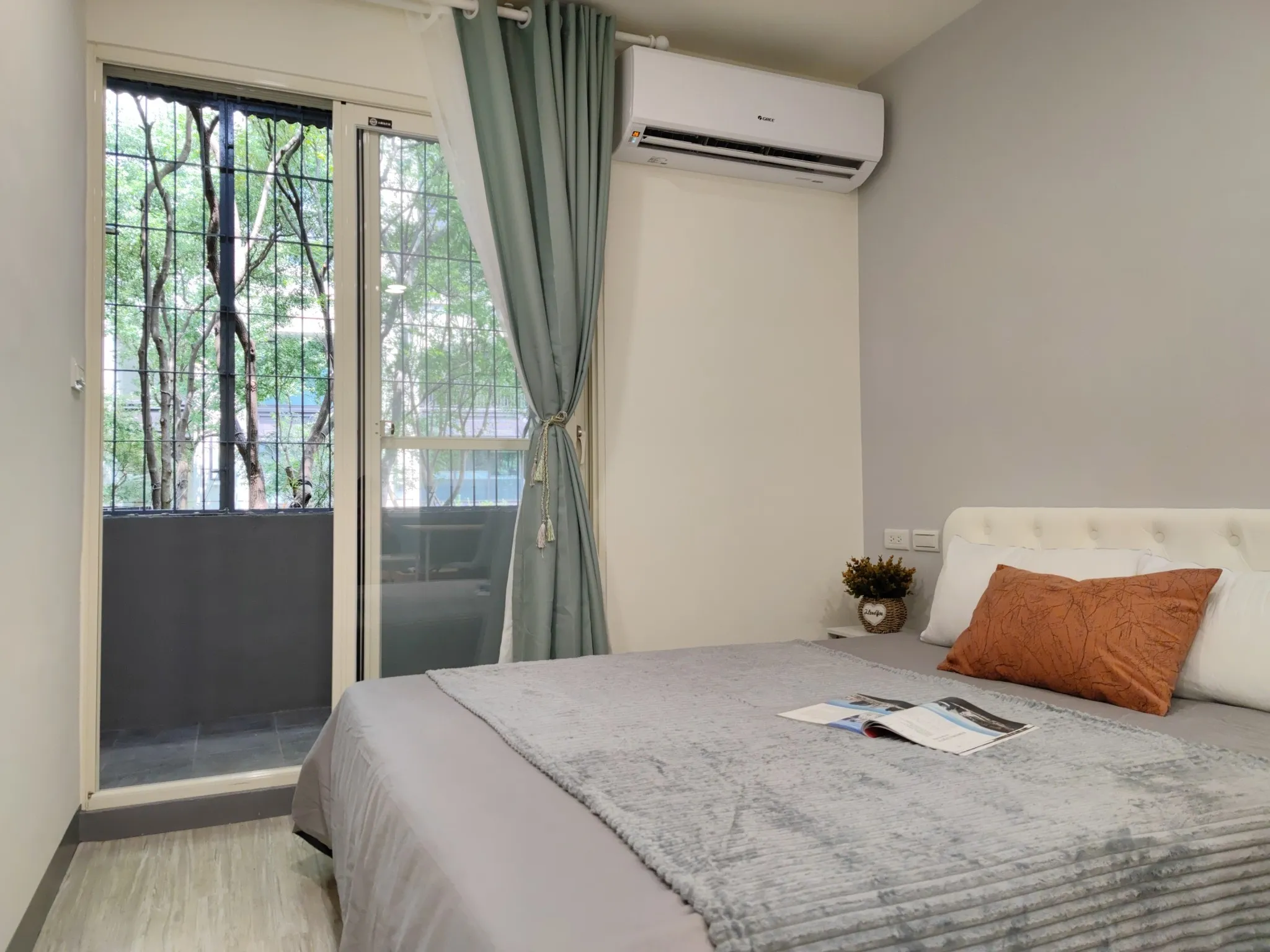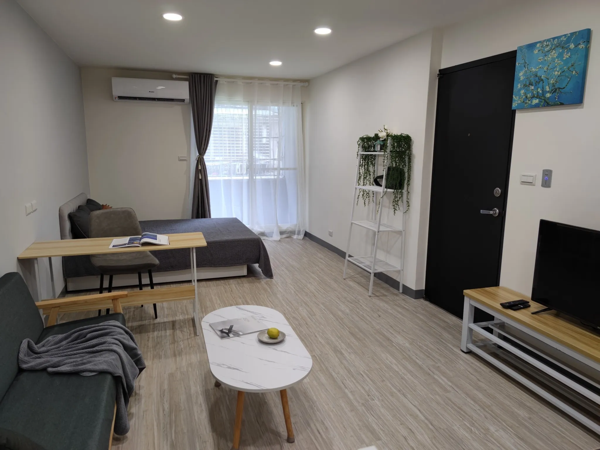 本案將此物件改裝兩套標準套房模式,前後陽台設計為落地窗,可充分達到通風及採光效果,開放式的格局讓空間無視覺壓迫感;全室水泥壁面老化部分打除模修粉刷,屋況經裝修改頭換面後,煥然一新!
