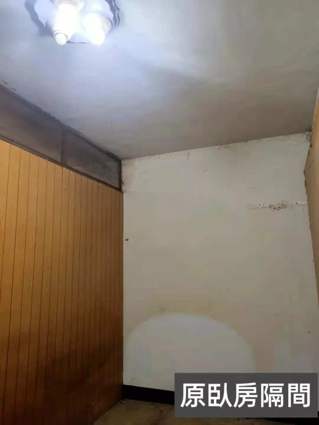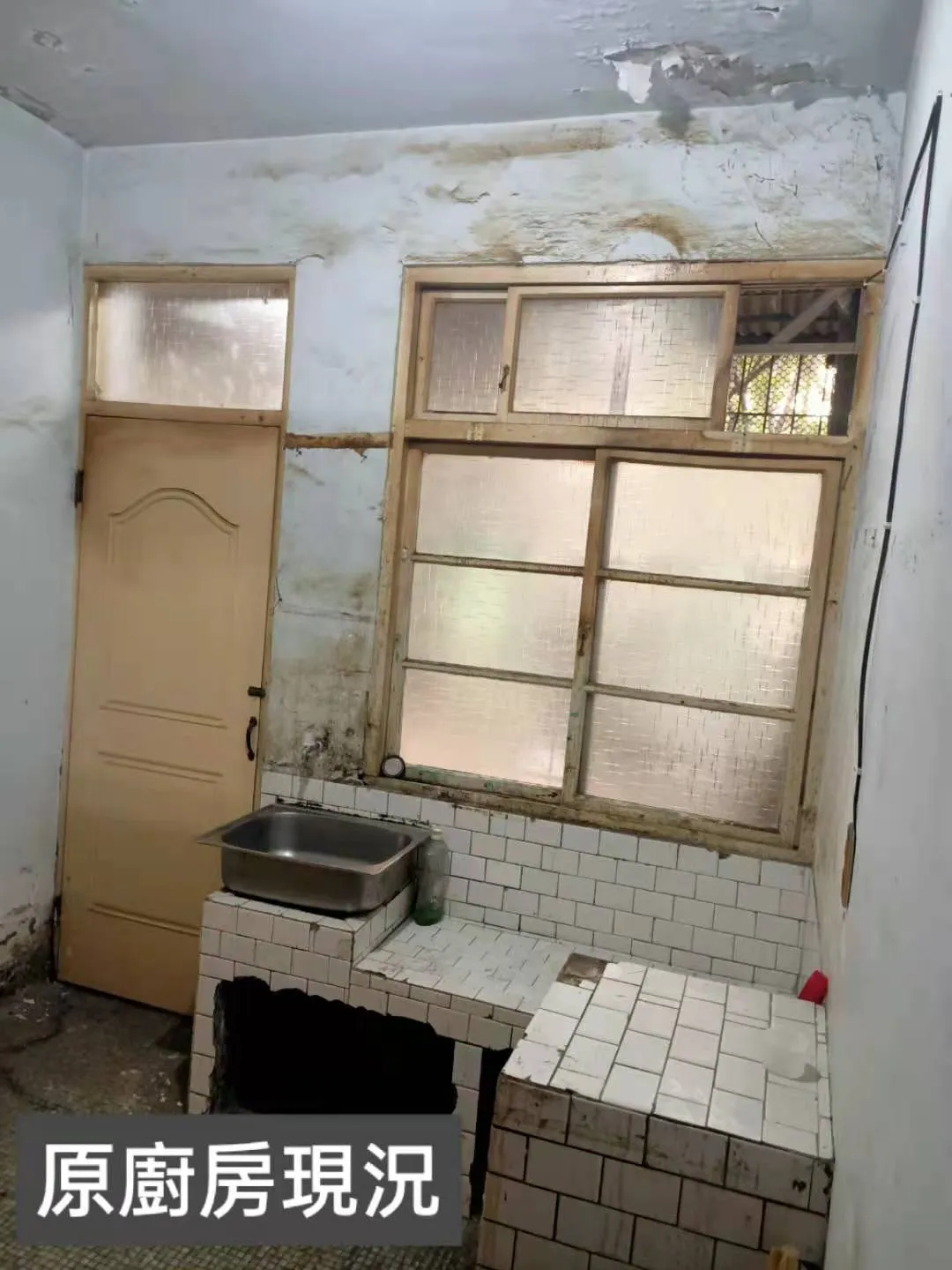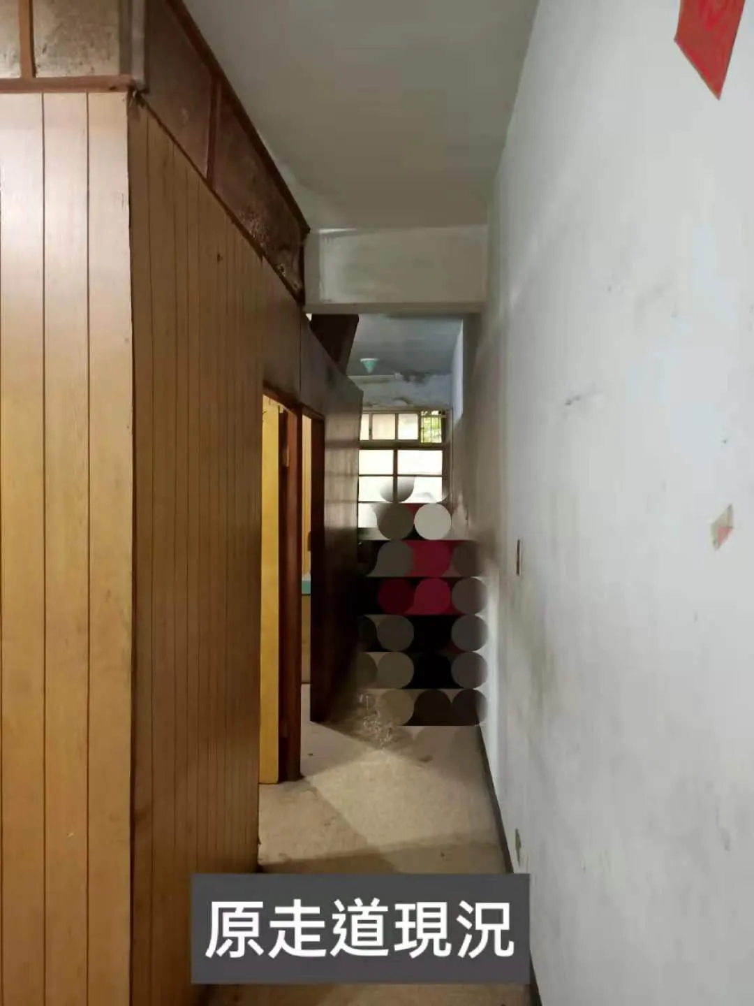 屋況結構為長條形的老舊公寓宅,雖有前後陽台可利用,但早期格局將臥房設置在物件中間,且無上封的木質隔間施作,除了隔音效果不佳外,通風及採光也不盡理想,室內易產生悶熱及濕氣感,屋內現況也因結構老化產生多處壁癌斑駁以及水泥崩落。