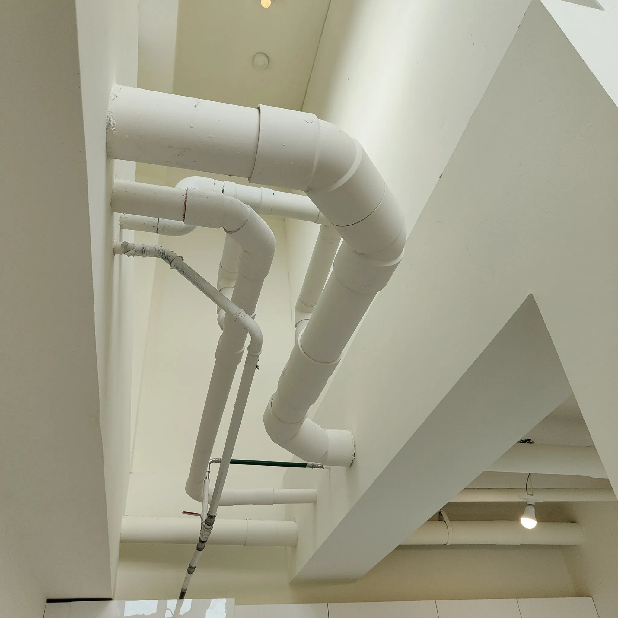 本案為多邊形的屋況,各項工程難度較高外,全室屋高僅為295公分要增設夾層客房,因礙於天花管線過於密集及梁柱問題受限制,夾層高度完成面計算後僅剩140公分,往上層樓梯如以常規平均階高向上設置,於上層時會