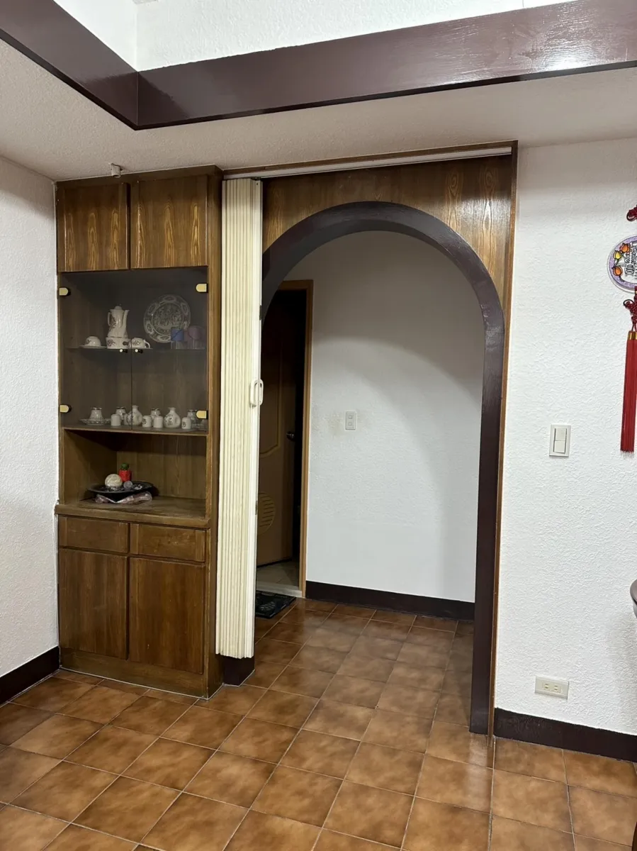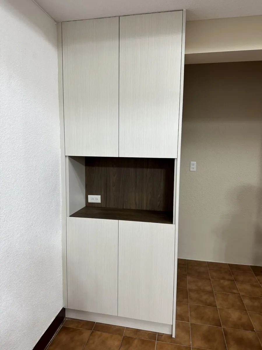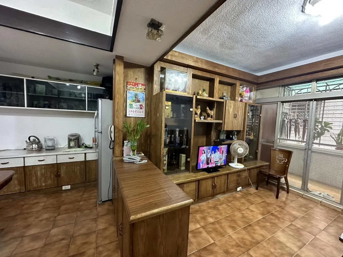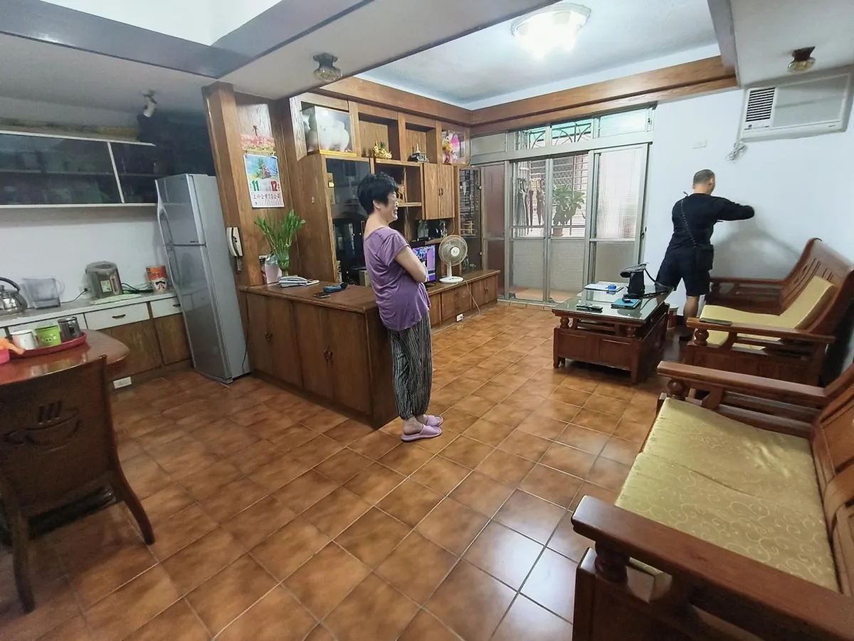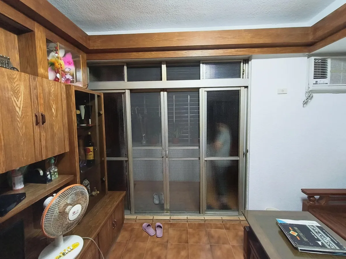 此案開放式的客廳及廚房櫃體面層貼皮已經開始剝落,新櫃體增加尚缺的插座及電視網路出口,原有地坪為舊式30cm*30cm地板局部已破損,進行鋪設免拆式超耐磨防水地板直鋪,落地門則以免拆式工法換新隔音窗,經處理後煥然一新。