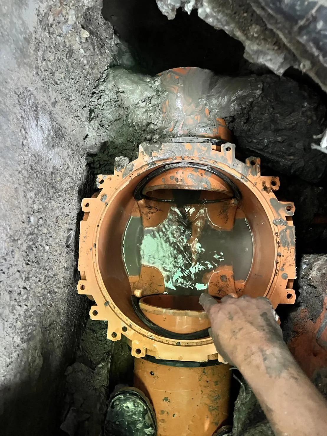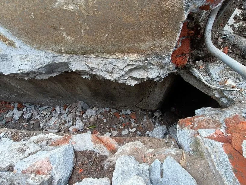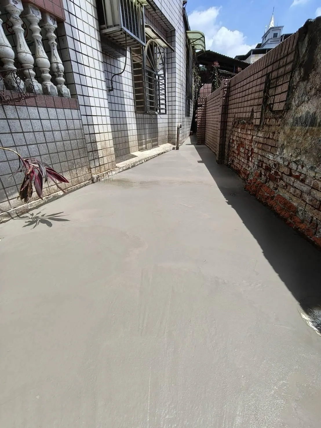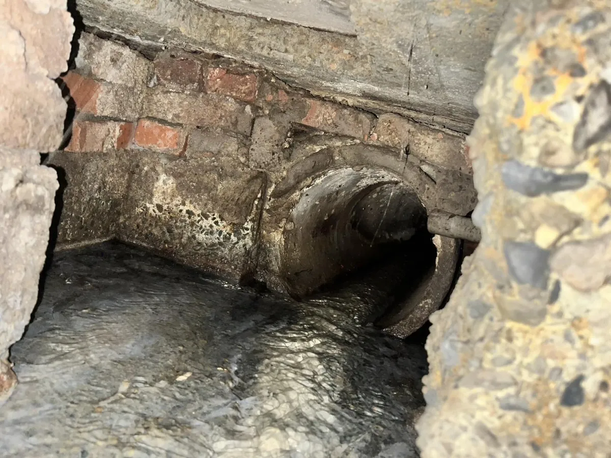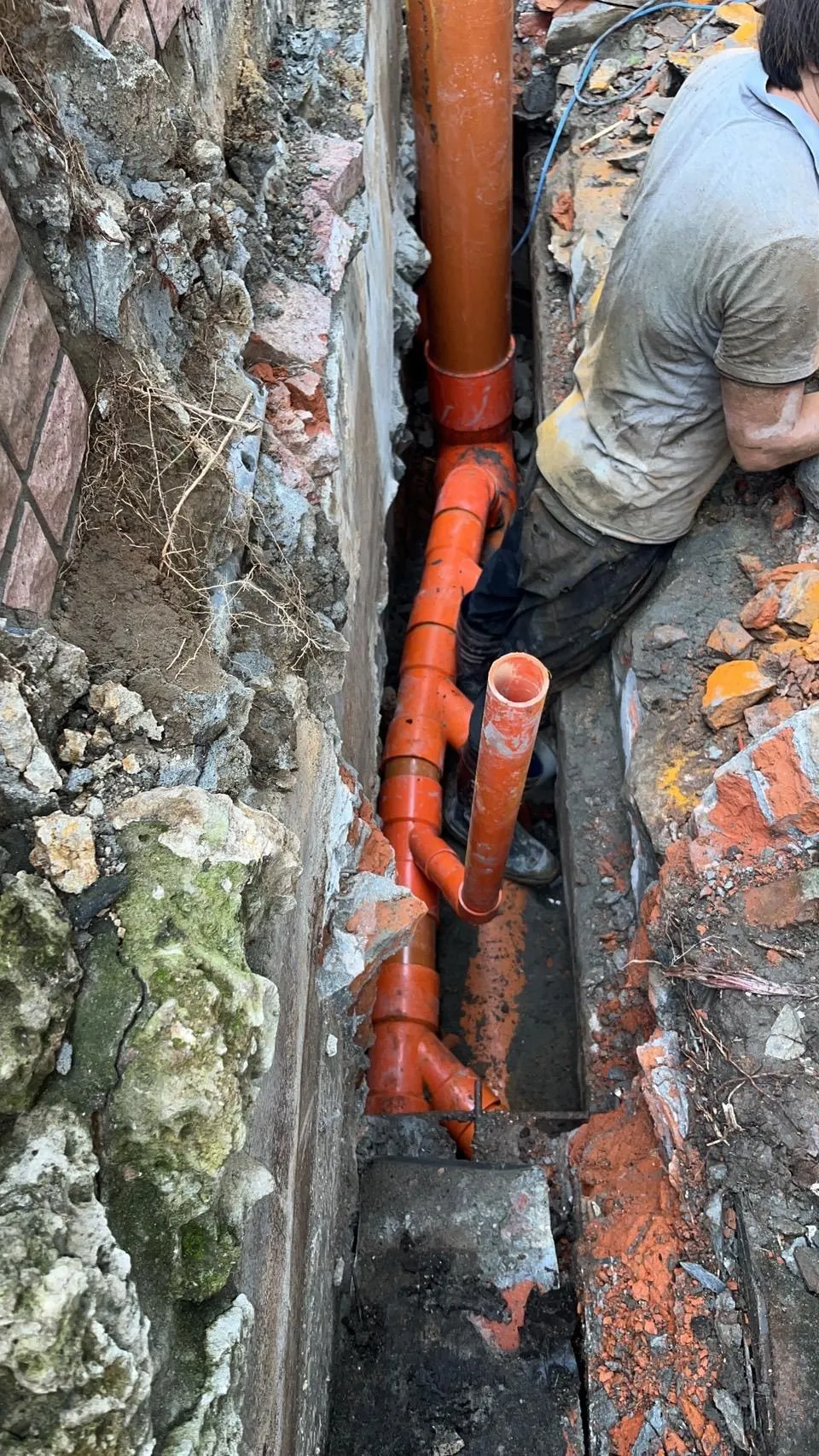 本案工程為狹窄側巷的舊式U型水溝老化,溝底延側牆滲漏至住戶地下室牆面,發生漏水情況已為時八年之久,曾以結構裂縫灌注工法進行止水,仍不見其效。近年來漏水情況加劇嚴重,如經大雨來臨時,地下室就須以面盆接水
