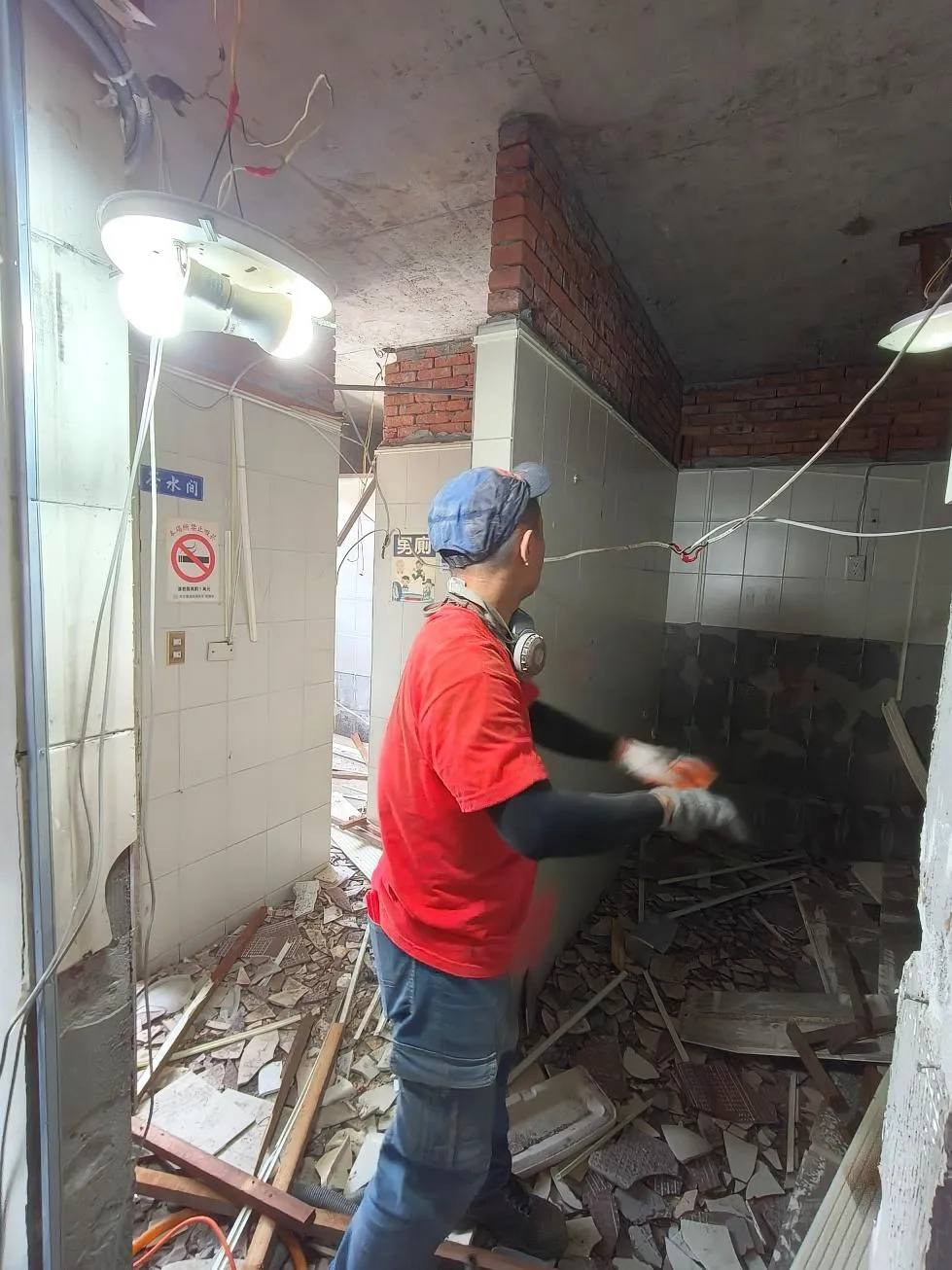 本案為得標訓練單位的工程,因單位課程早已排定因素,我們必須由課程空檔期間安排施工;從拆除、砌磚隔間、防水、牆面打底、搗擺隔間、衛浴設備安裝等,工期僅為1個月時間;無縫接軌的施工進度,工期表低空飛過。