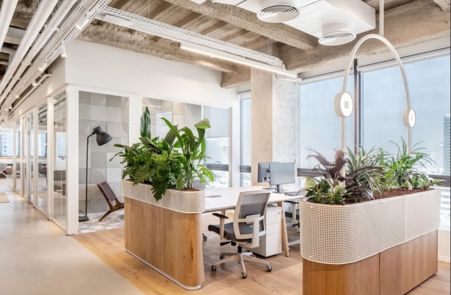 綠色環保風格的辦公室設計是一種注重環保、可持續發展和健康生活的風格,這種風格以自然為主題,透過植物、自然光、可再生的環保材料…等元素,打造一個綠意盎然的工作空間。