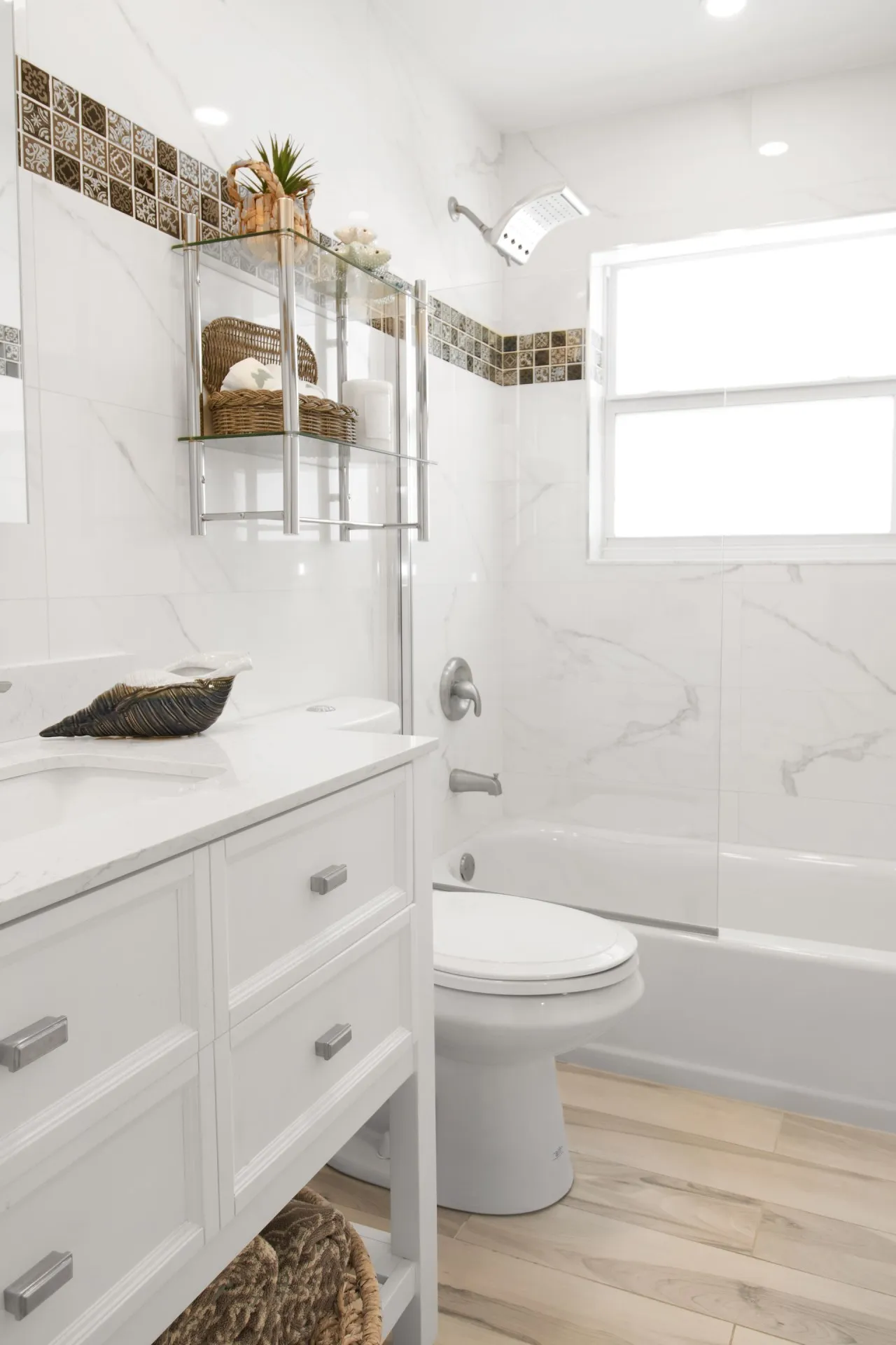 其次我們要避免過多的裝飾細節或死角,雖然這些元素可能在視覺上增加了浴室的吸引力,但它們也會讓清潔變得更加困難,例如:過多的雕花細節或是過多的縫隙,都會讓清潔變得更困難,同樣地,複雜的浴室配件,如:鑲嵌在牆壁或地板的裝飾,也會讓清潔工作更加困難。