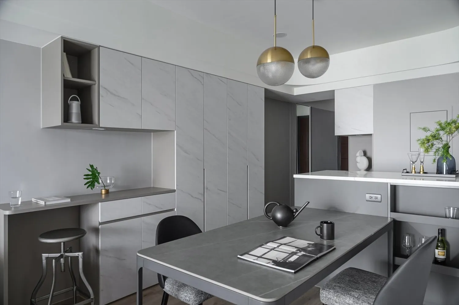 在餐廳設計中使用大理石吧台,不僅能增強功能性,還能增加空間的豪華感,選擇與整體設計風格相匹配的石材顏色和紋理,能夠更好地融合空間。