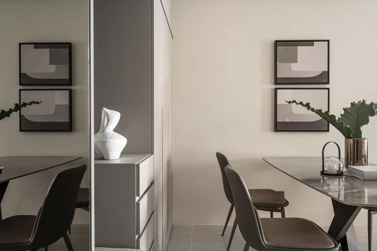 在極簡氛圍中,光線成為最重要的裝飾,若空間結構允許,建議加大窗景或採光井,搭配輕薄紗簾,讓自然光與室內燈光在空間裡交織,還可以在主視覺牆面掛上一幅抽象藝術畫作或大型雕塑,透過聚光燈聚焦,就可以讓整體的「純淨」基調中帶有「人文深度」。