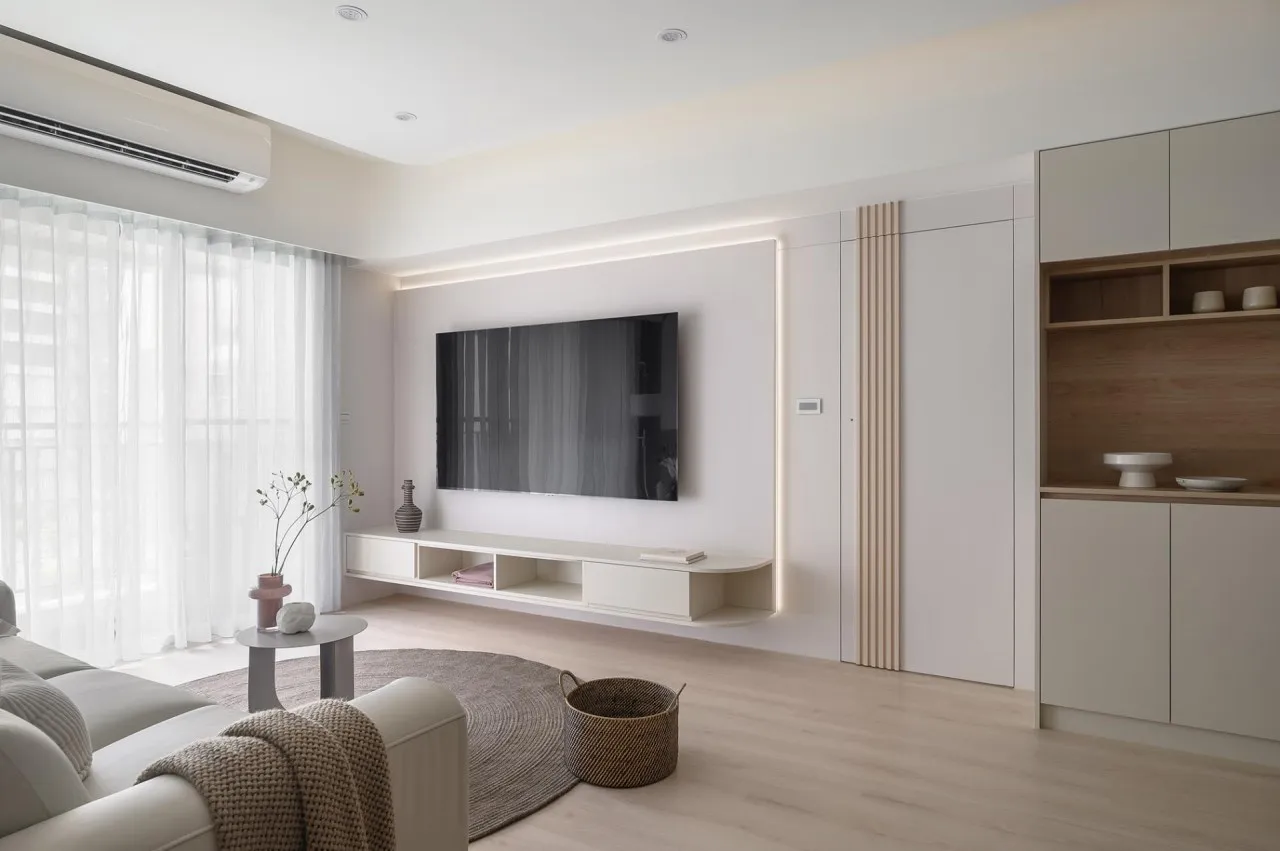 選擇棉麻或羊毛織品在沙發、窗簾、床頭靠墊…等位置,搭配細膩的地毯,塑造溫暖與安心的家庭氛圍,若想再增添層次,可以引入粉彩或莫蘭迪色系的抱枕或小圓凳,提升視覺豐富度。