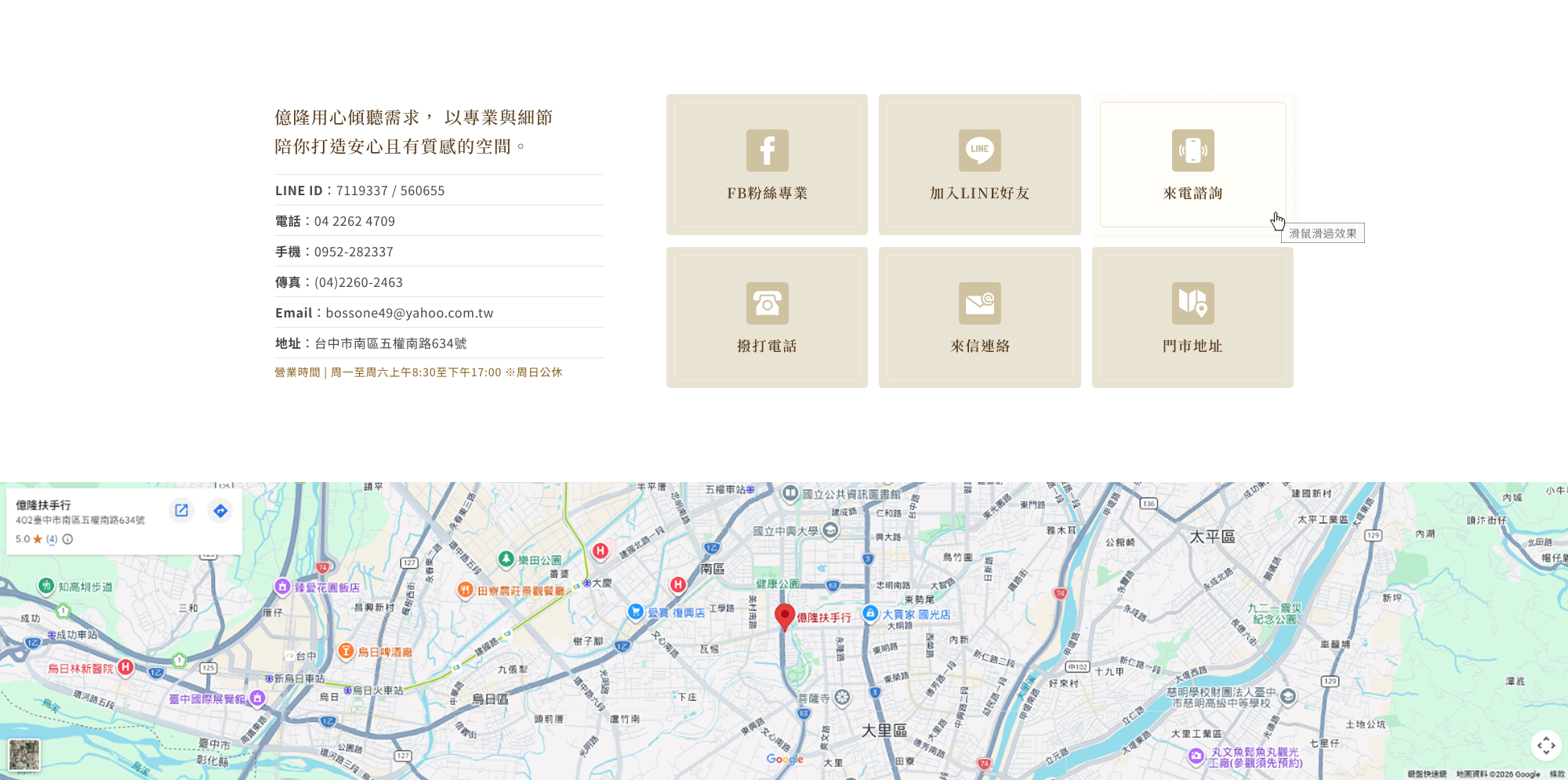 公司地址:台中市南區五權南路634號