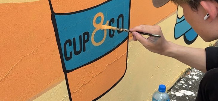 針對店面立面與鐵捲門提供高耐候彩繪設計與施工。白天是醒目的品牌門面,夜間鐵捲門仍維持完整識別與記憶點,適用於街邊店家、觀光商圈與老街改造等場域。