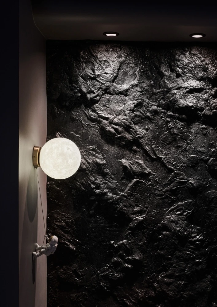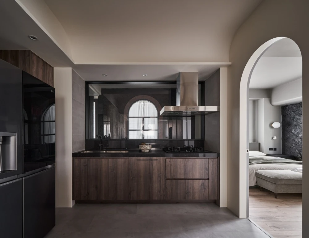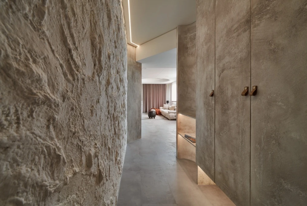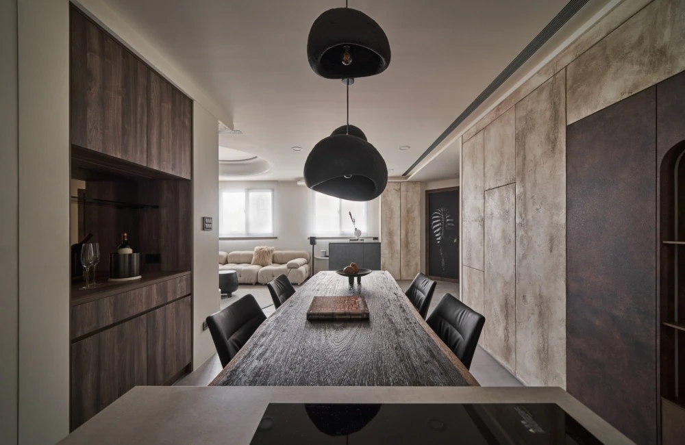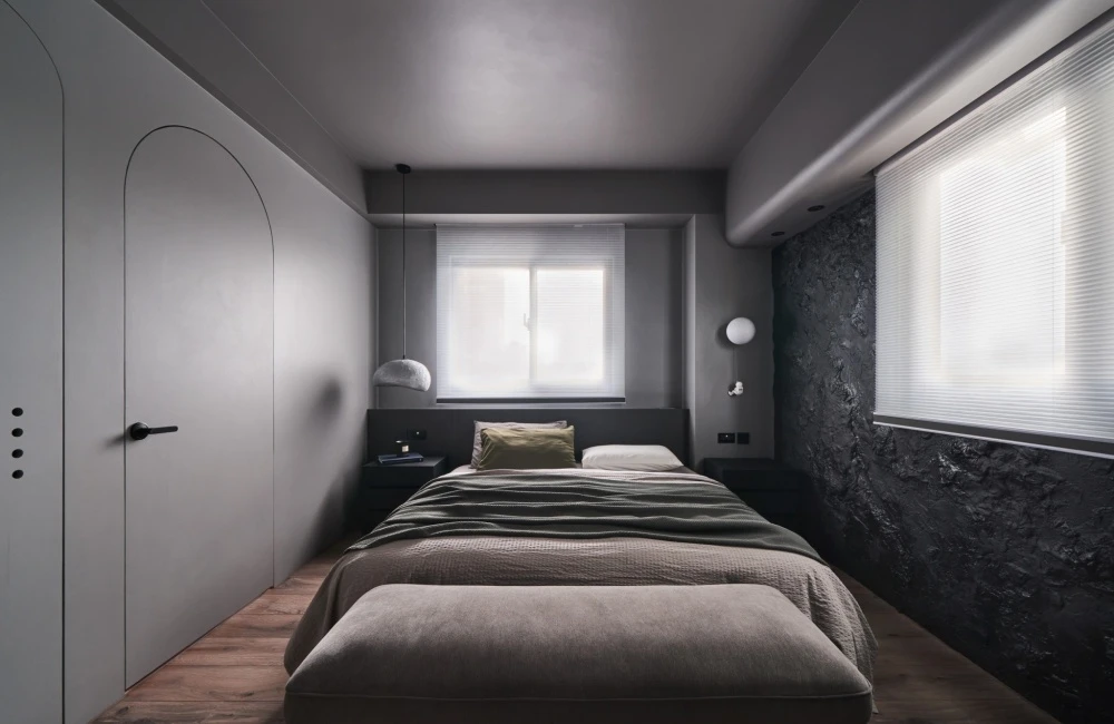 最後來到臥室,曠野之息的交織暈染形成鬼斧神工之作,黑色岩石如山巒疊翠之景,門片利用幾何元素,不同質地相融合,交織成獨一無二的幾何秘境,在寂靜之中盡享所有事物的美好。