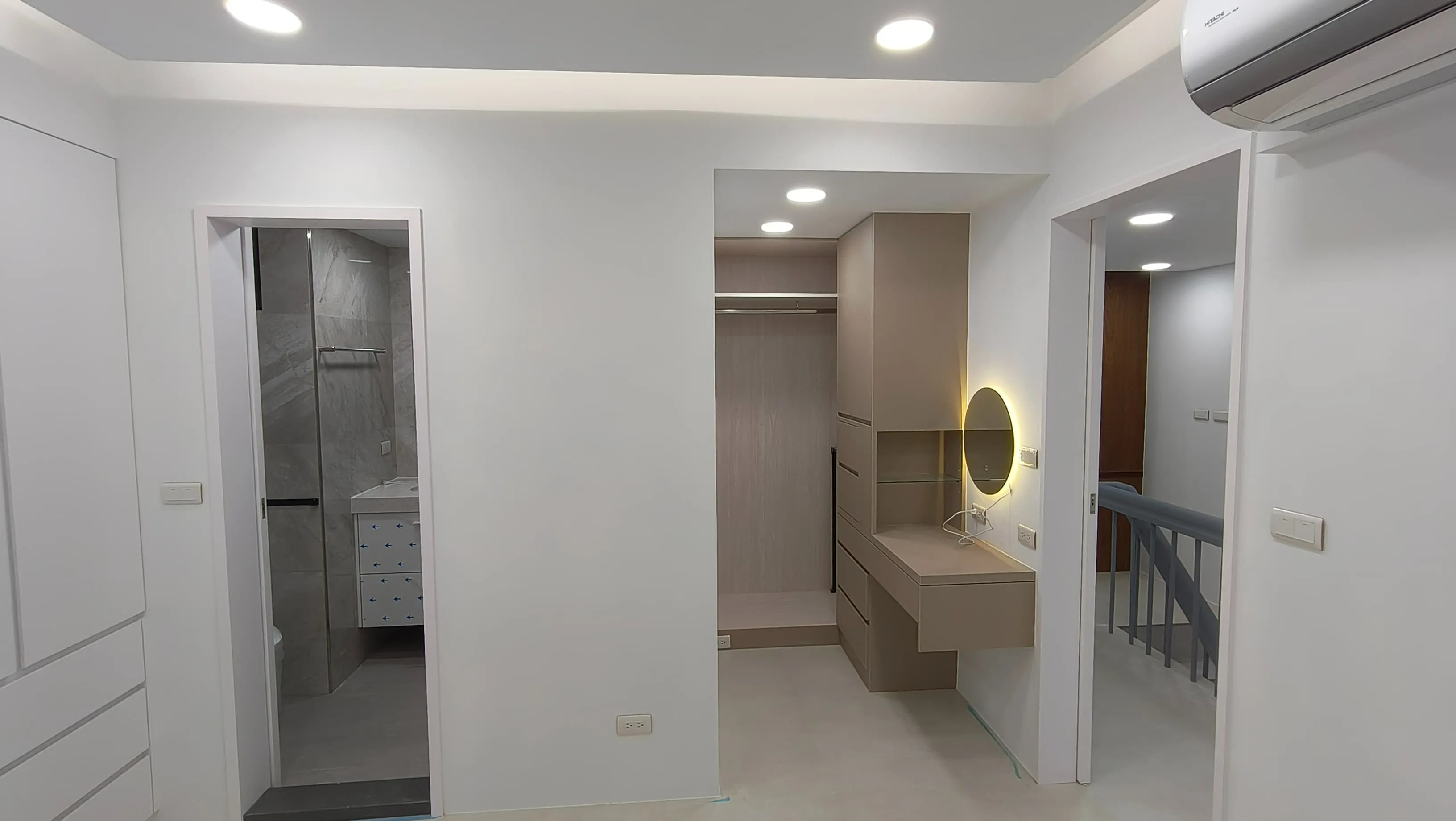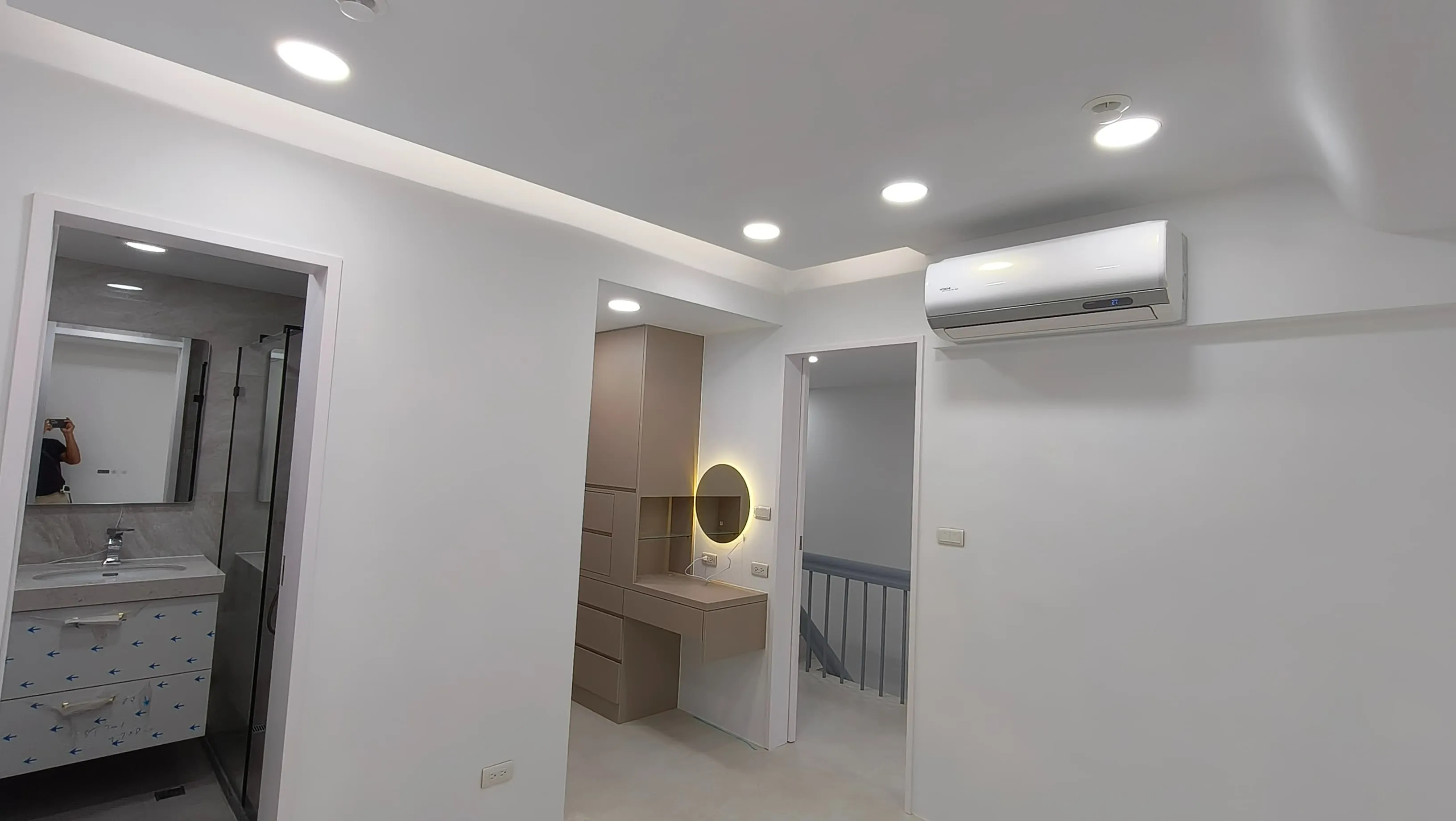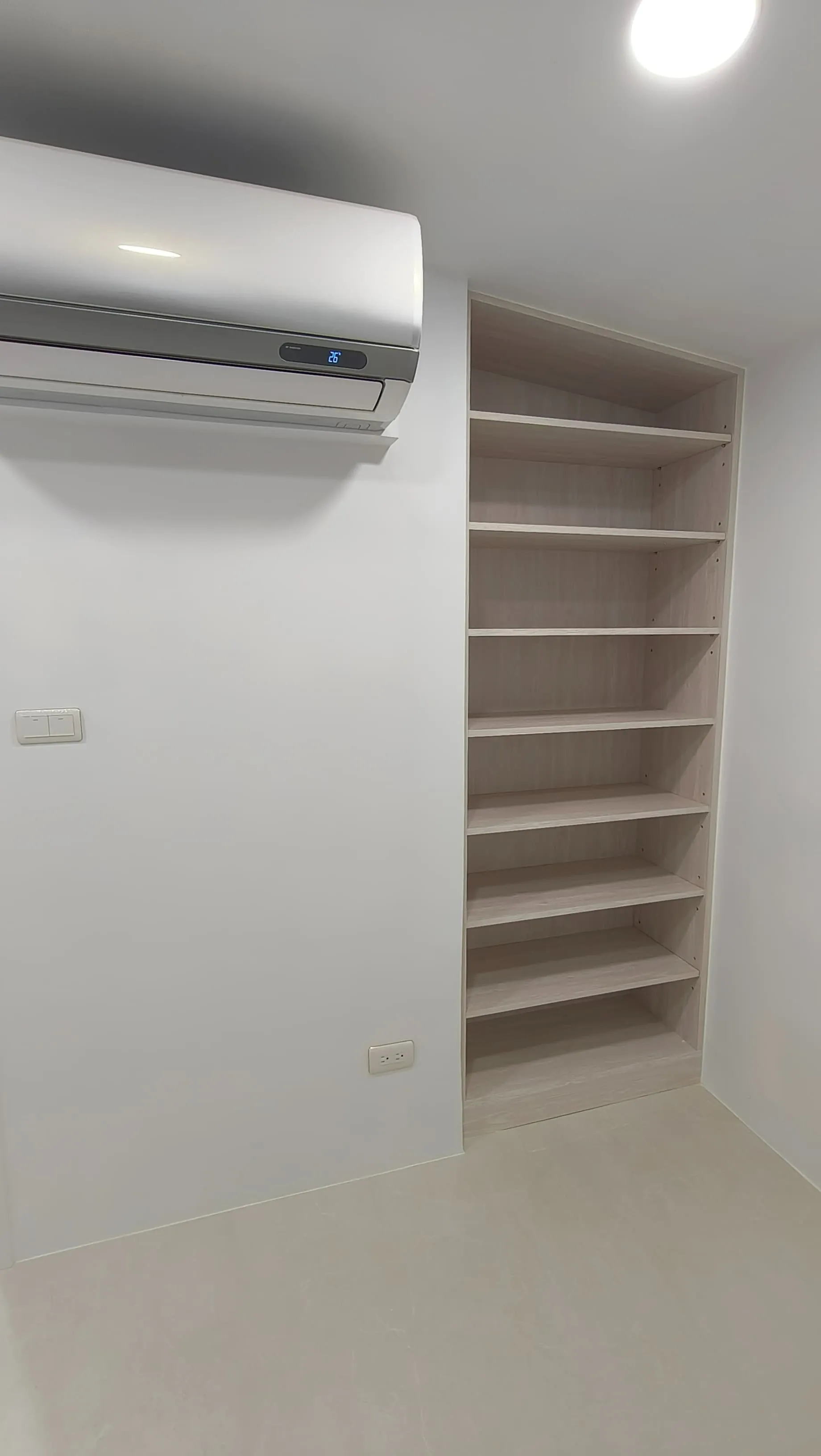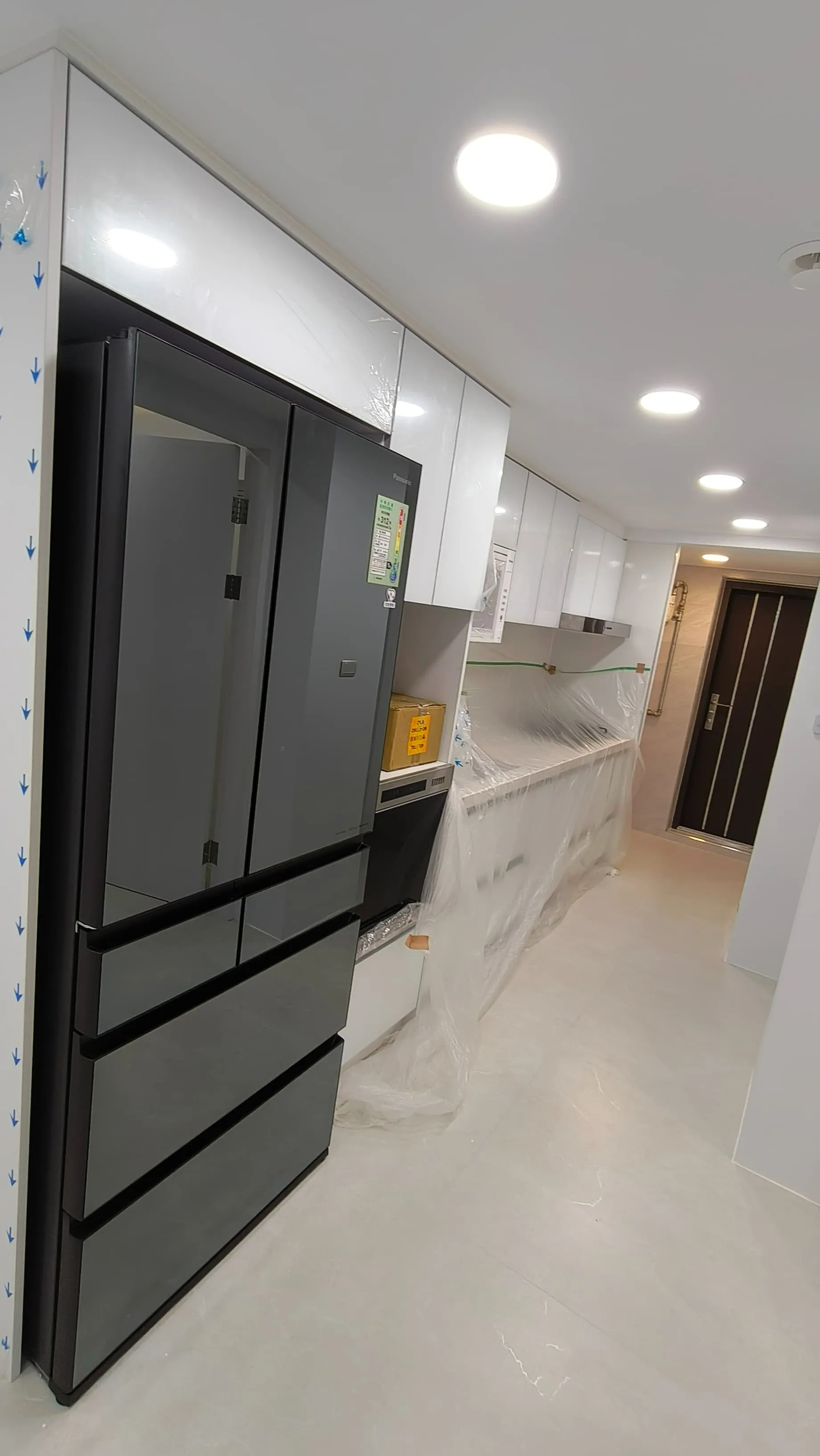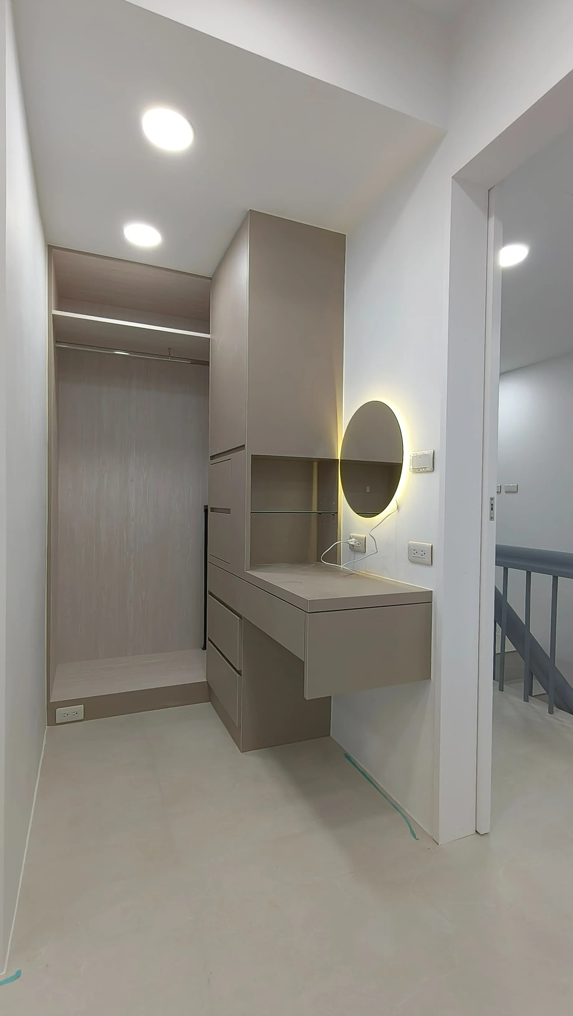 櫃體工程是整個裝修過程中的一大挑戰。木工訂製的櫃體由於設計複雜,耗時較長。原本計劃使用木皮的櫃體門片最終改為冷烤噴漆,這一變更增加了製作難度。噴漆過程中,噴塗的質量與均勻性是關鍵,使用了班傑明摩爾的水性冷烤漆,以確保環保和美觀。