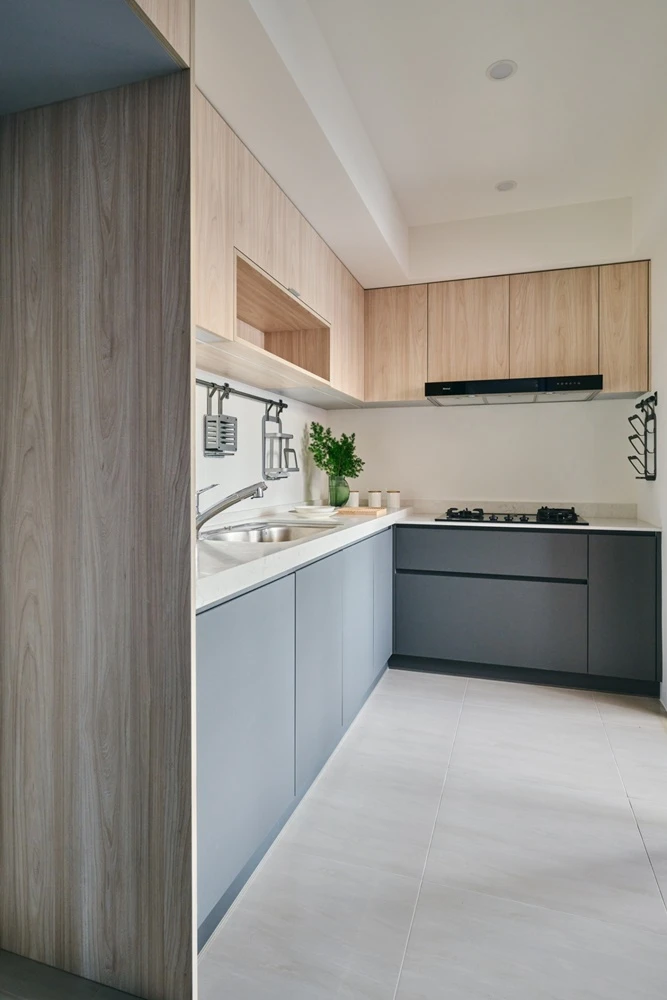 溫暖的北歐白色系映襯著木紋的樸實感,大理石紋的點綴為空間帶來一抹驚豔氣息,木紋感的溫潤、大理石的穩重,讓空間有協調的層次感,稍稍帶入輕奢華的示視覺意象。