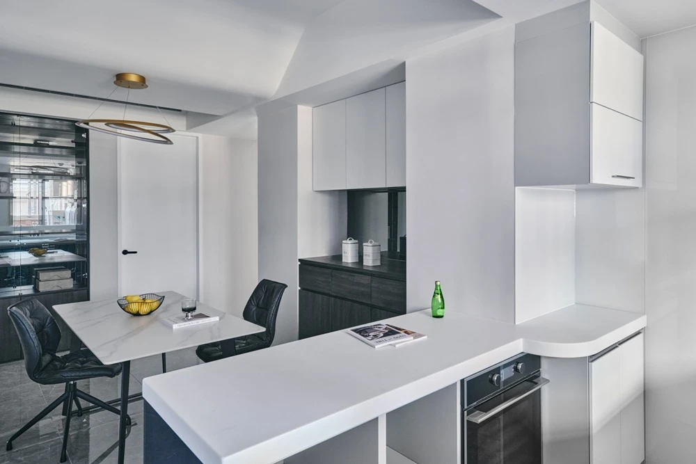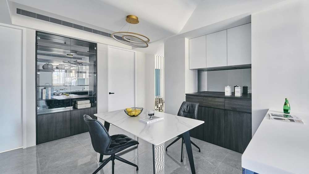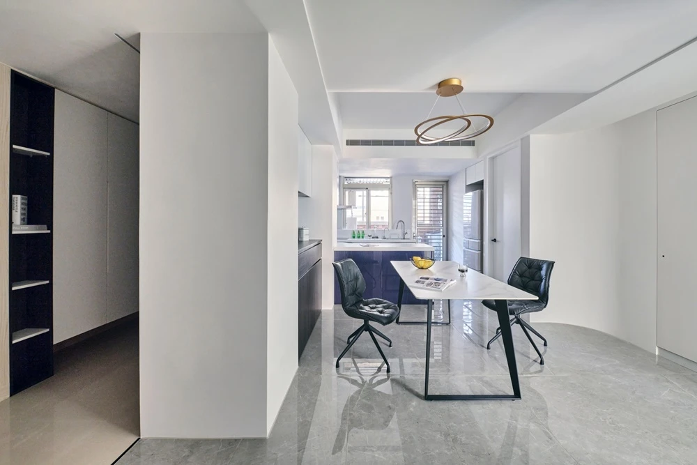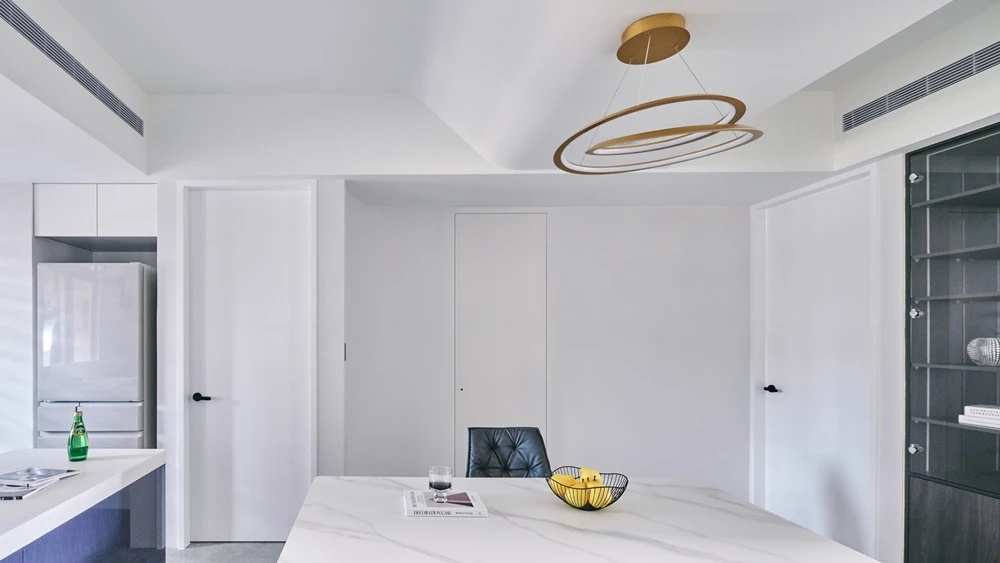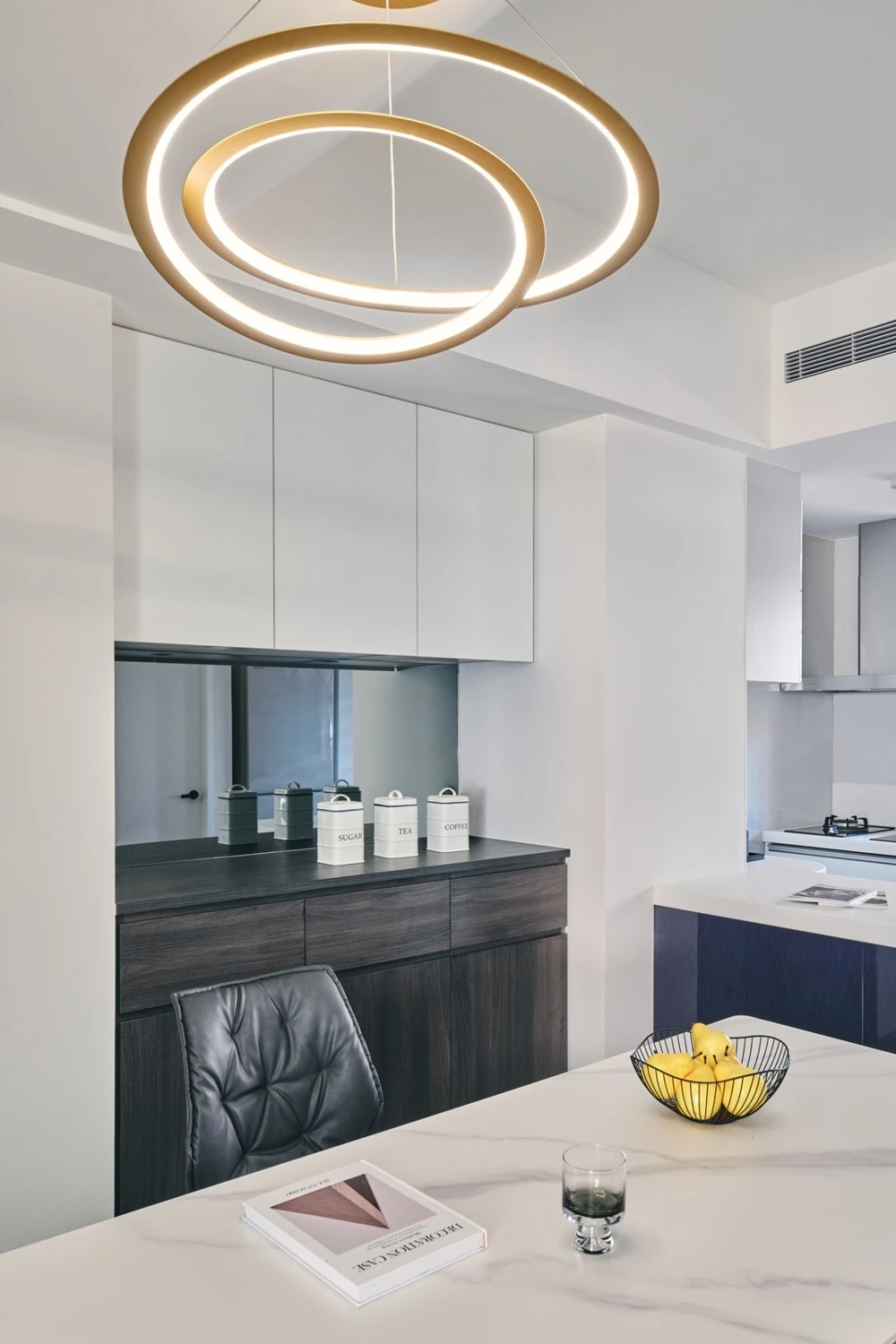 整體格局維持三房兩廳兩衛,將一家人互動最多的客餐廳空間放大,風格上融合了小兒喜愛的溫暖北歐和大兒的低調奢華,再來是屋主愛不釋手的日系廚,滿足收納和好清潔的需求。