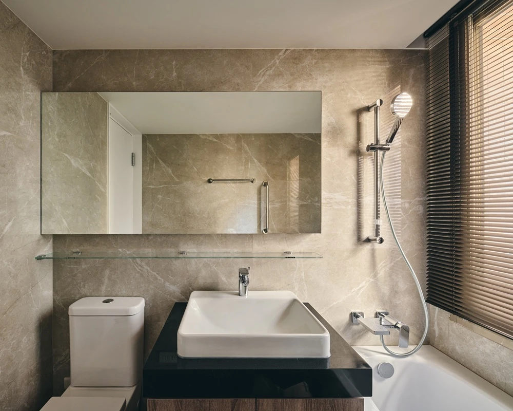 使用建材 西班牙進口大板磁磚、進口美耐板、俄羅斯進口藝術漆、歐盟認證環保系統板
