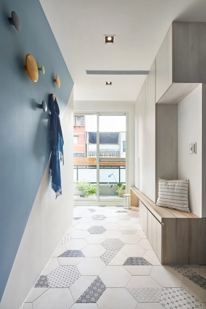 為了不阻擋光線的進入,闢出界定室內外的玄關空間,