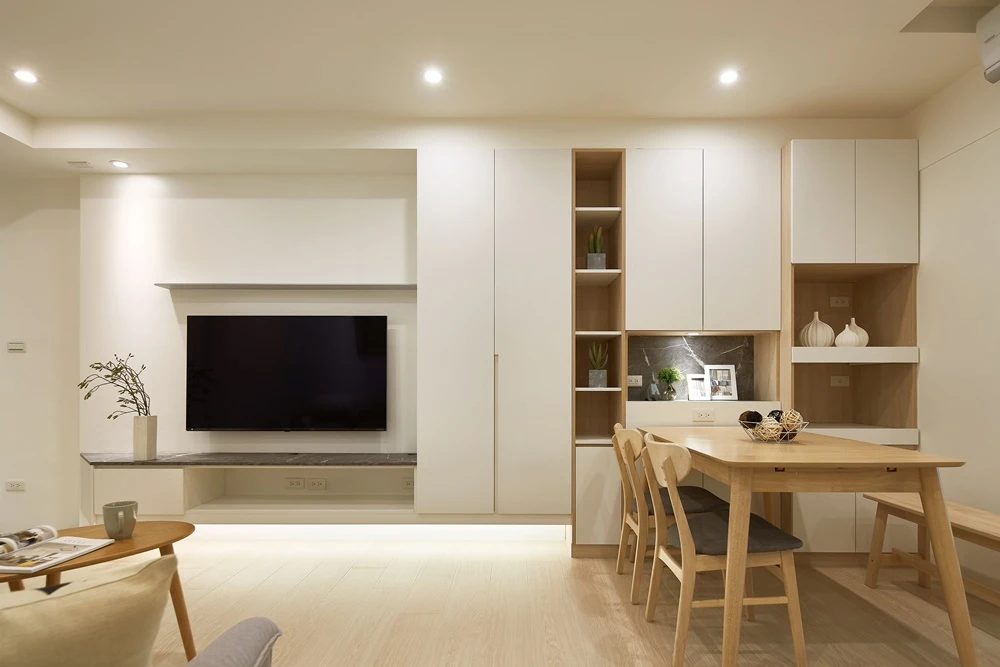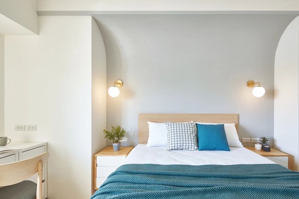Mysa!! Mysa!!回到家映入的第一眼,趣味的洞洞板搭配幾何地磚,瞬間被甜滋滋散發出來的幸福感包圍,櫃體俐落的線條分割輔上優雅的曲線襯托,有股釋放壓力般的舒適,回到主臥以休憩和品味相輔,小孩房活潑的帶出童趣的宣言,盡情的玩樂。