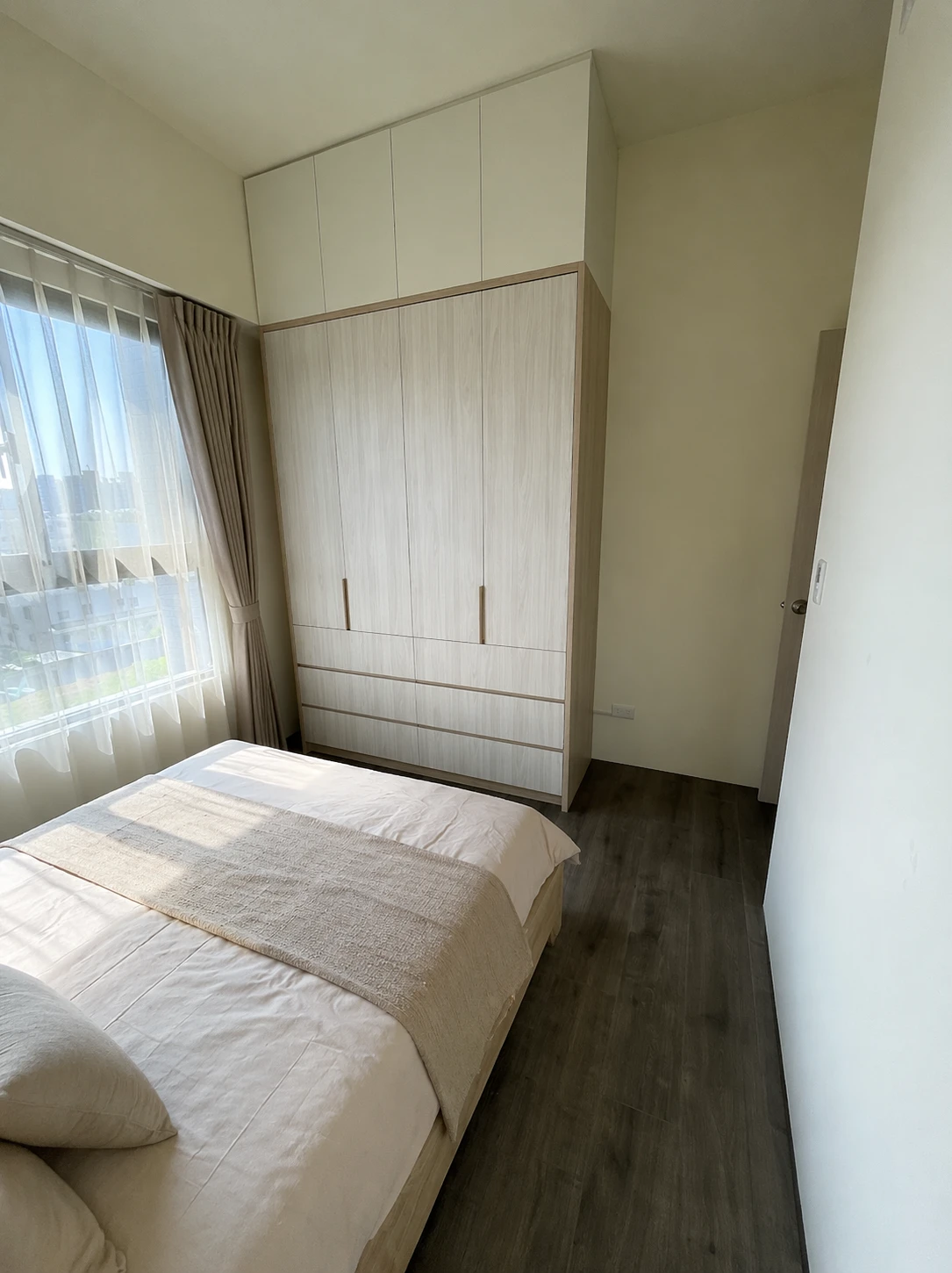 整體空間以淺木紋為主,搭配白色牆面,營造出明亮溫暖的居家氛圍,呈現自然舒適的生活感。