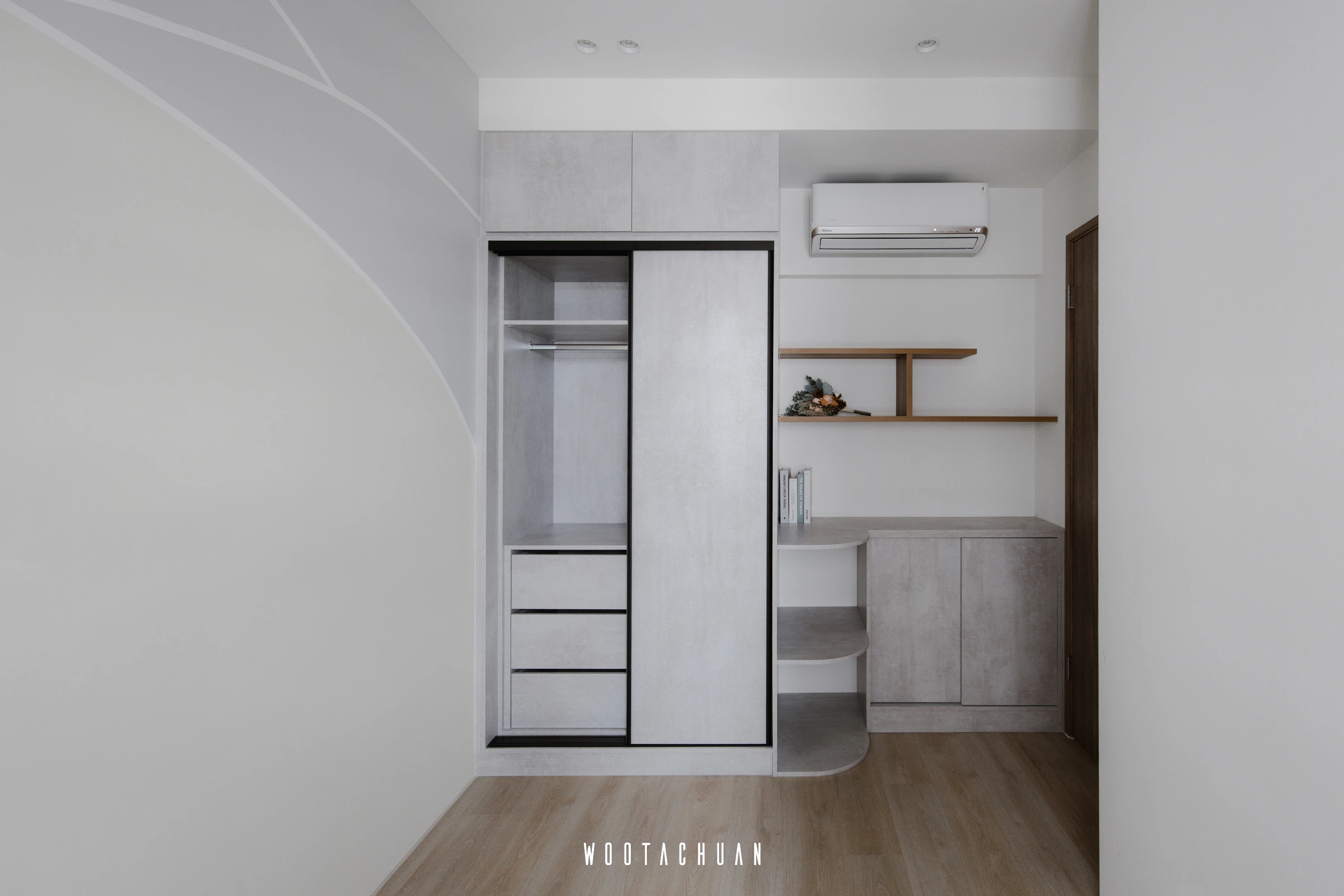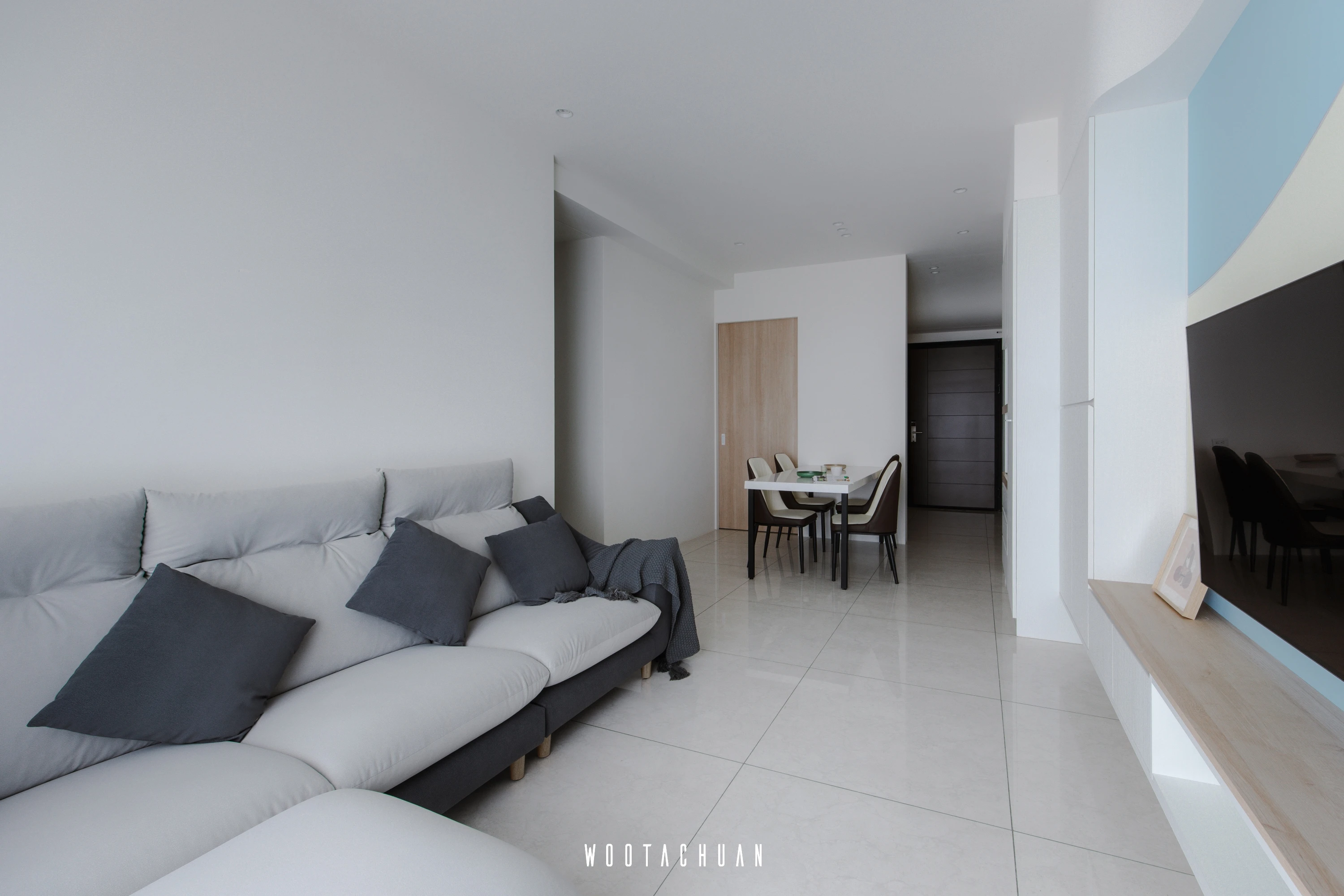 地板鋪設著柔軟的⽺⽑地毯 彷彿您在踩著輕柔的雲彩 。