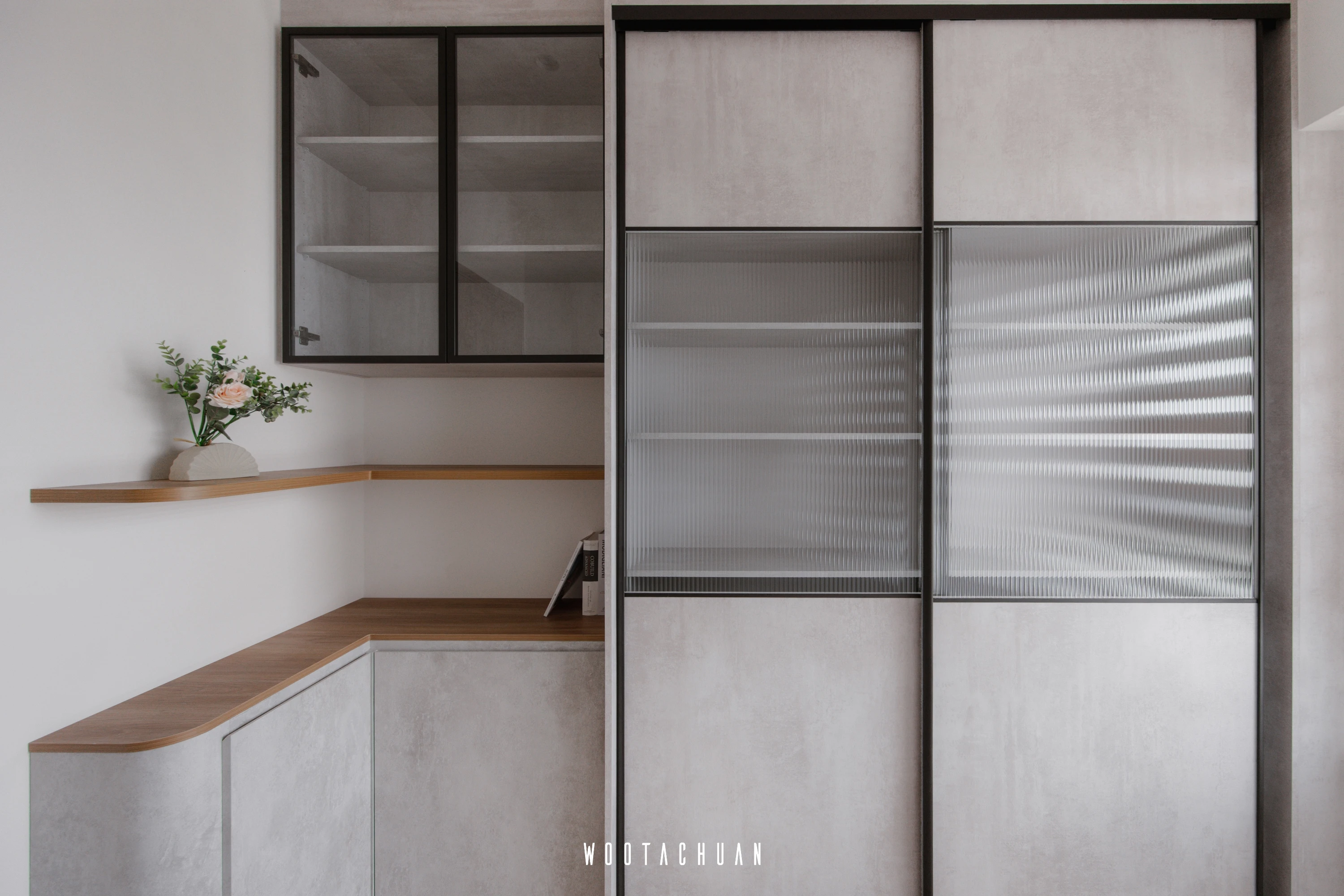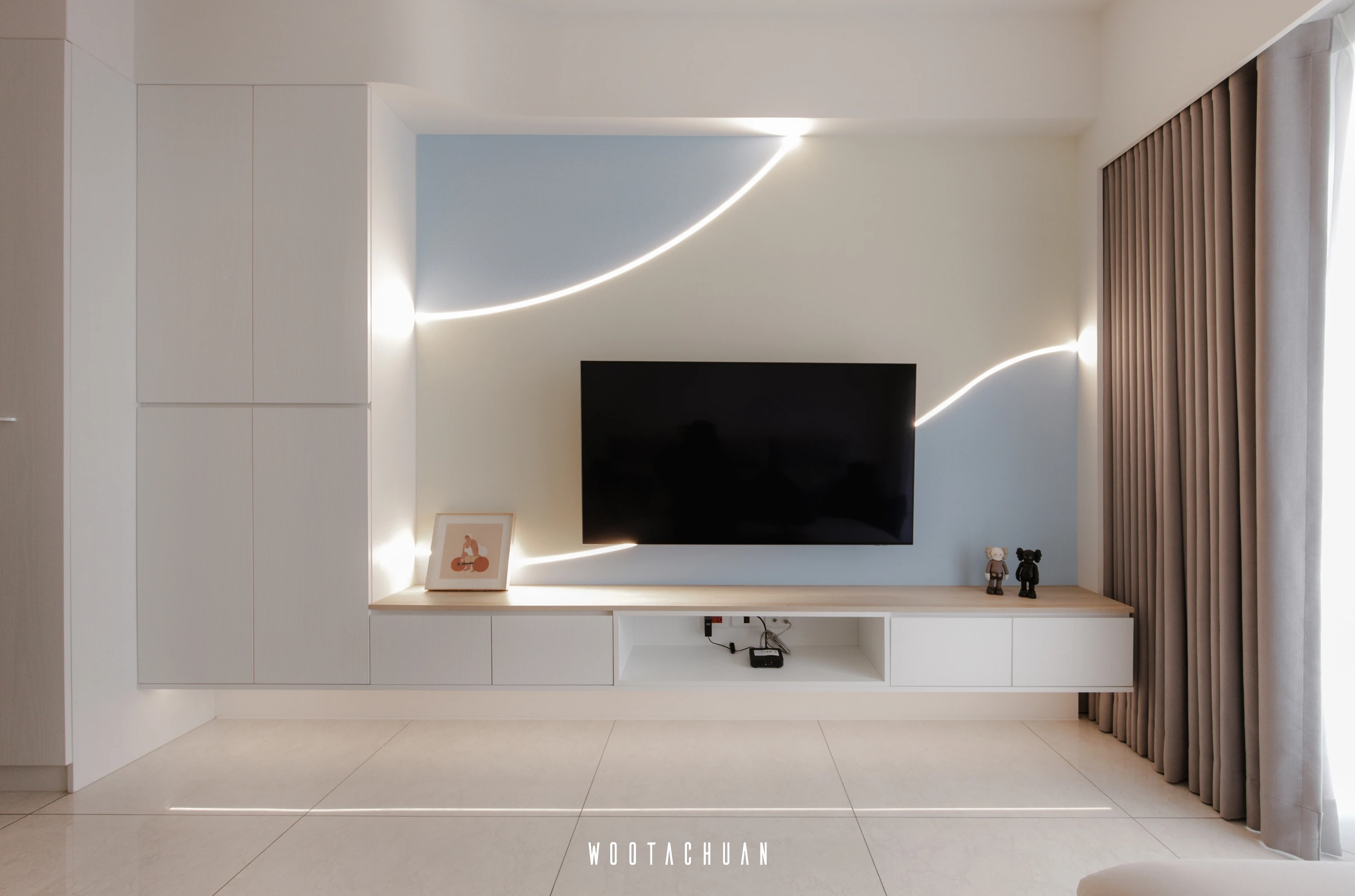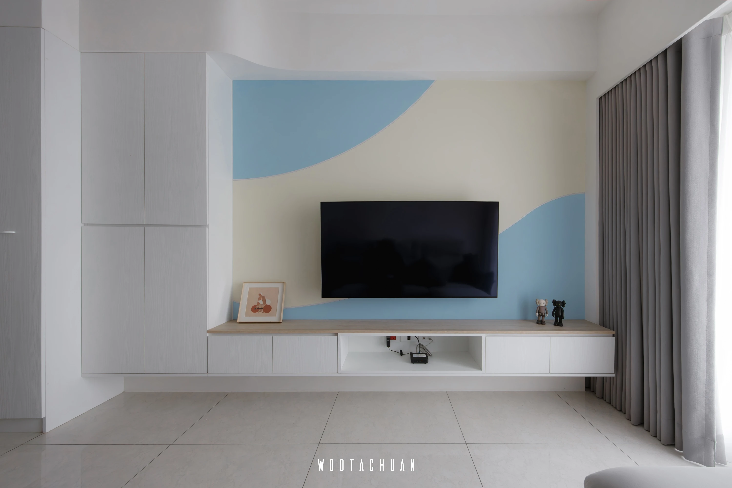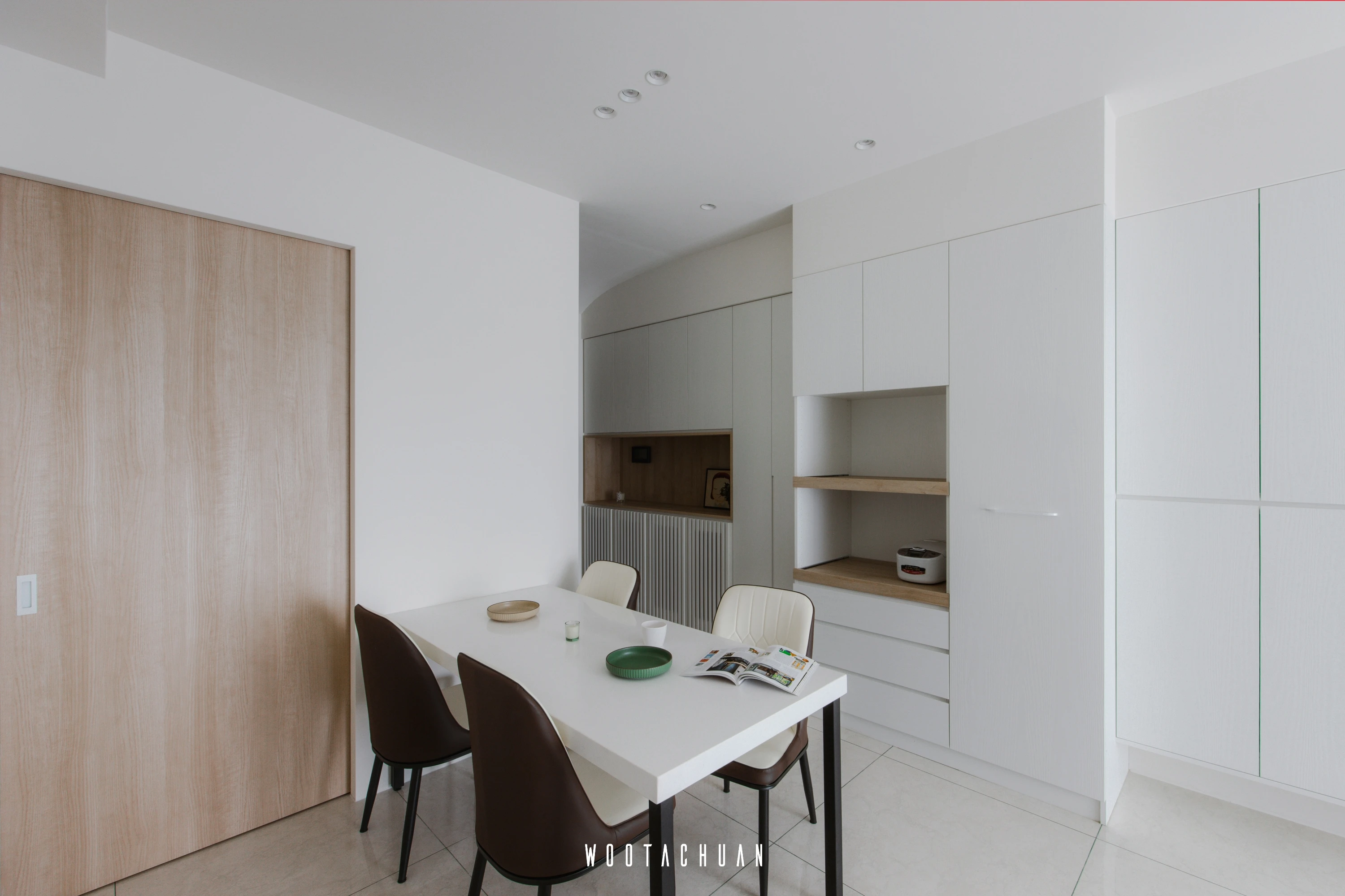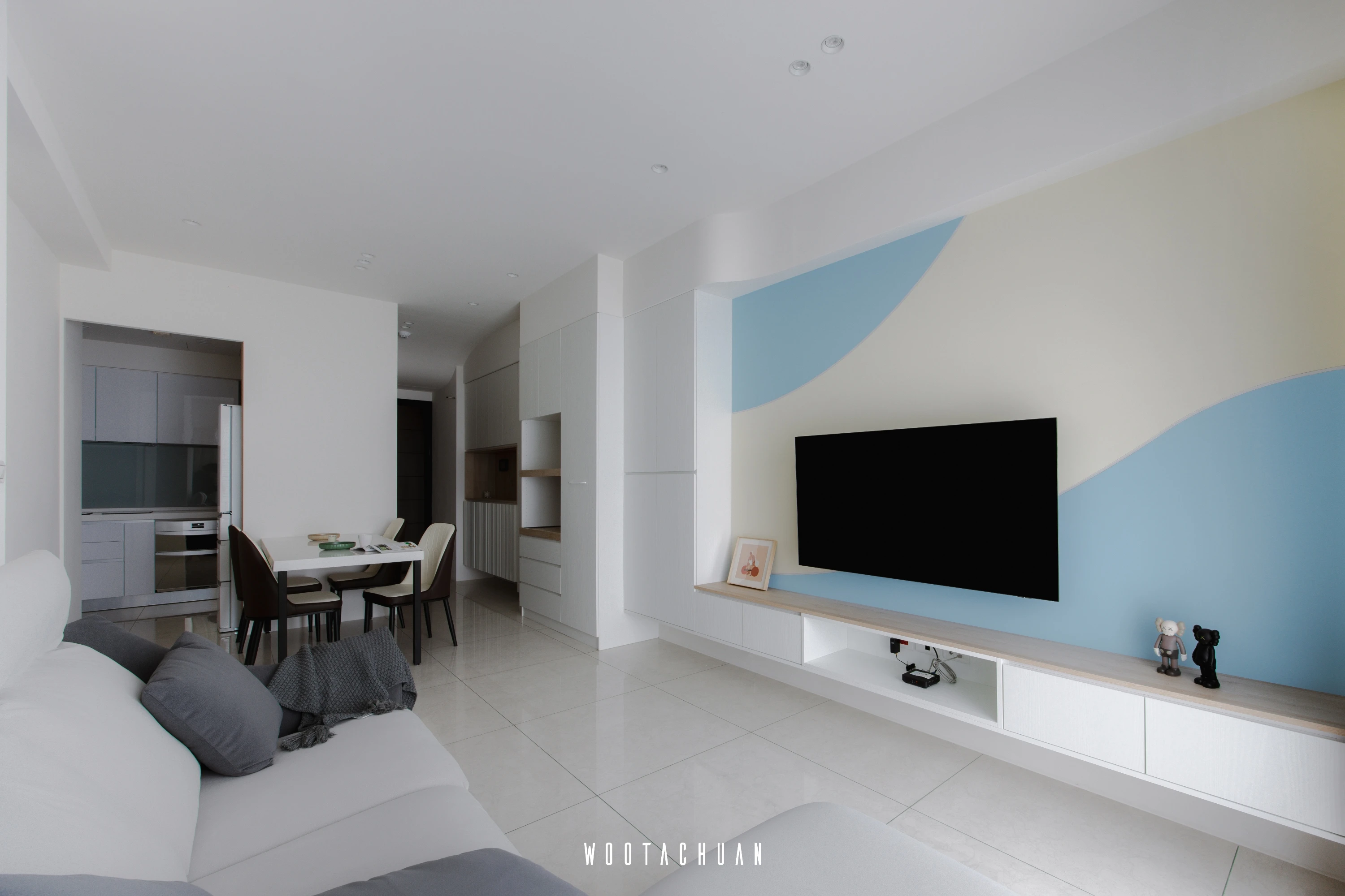 巨⼤的玻璃窗⼾讓陽光穿透 映照出柔和的光影 彷彿雲朵在輕輕飄動 。