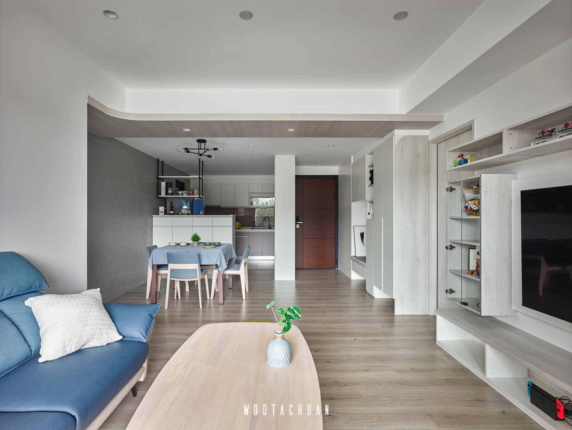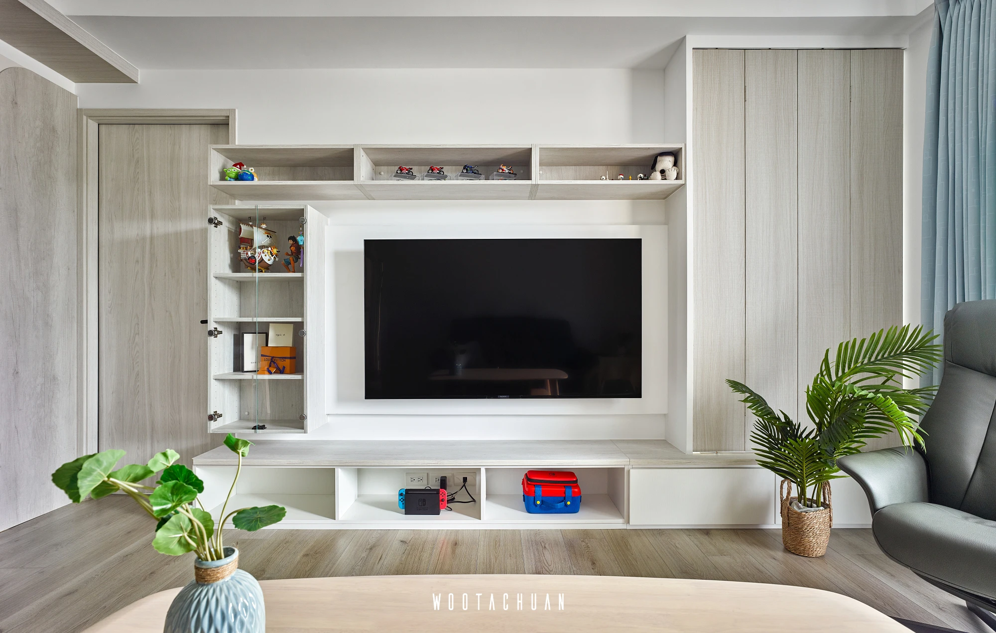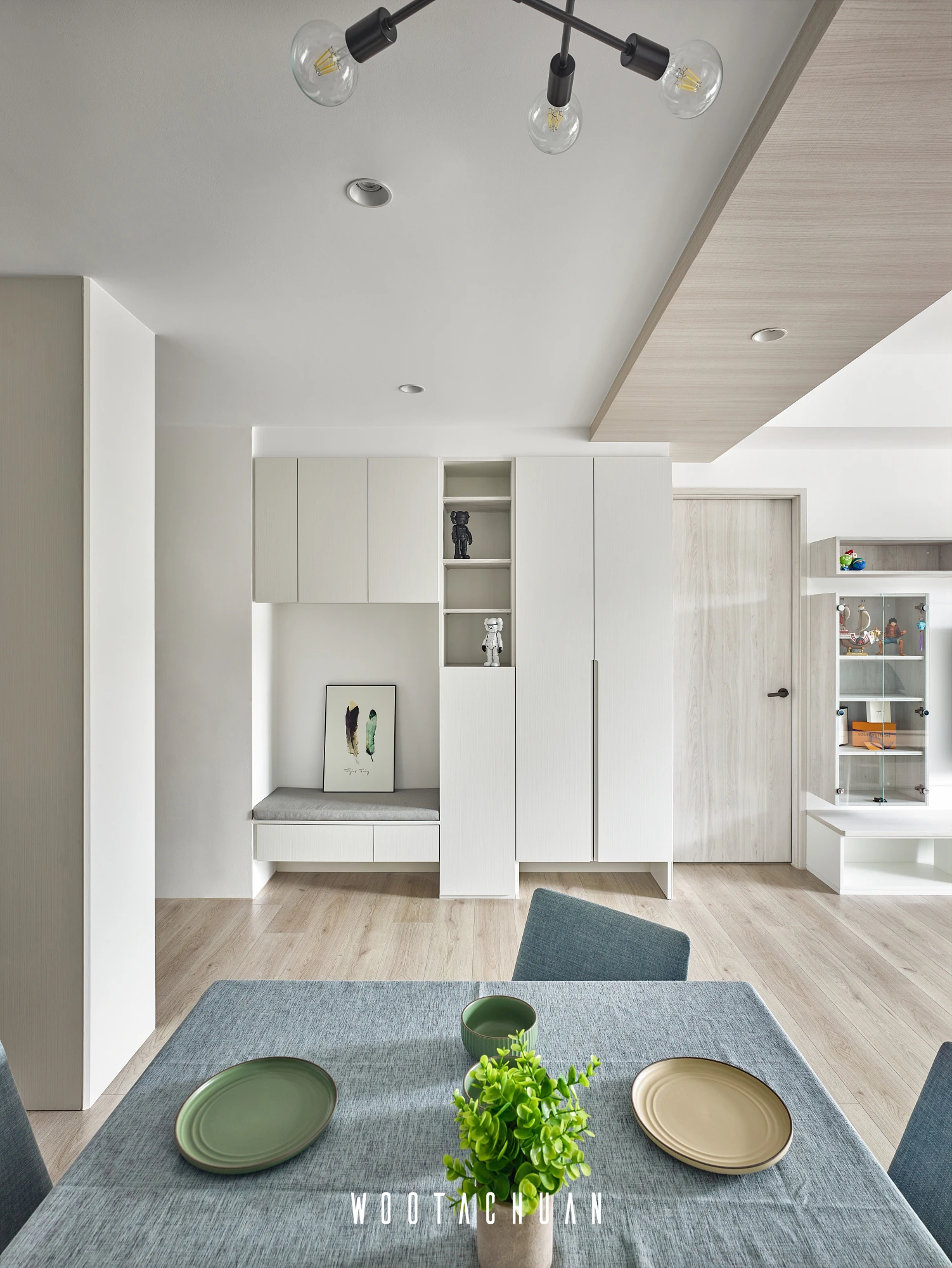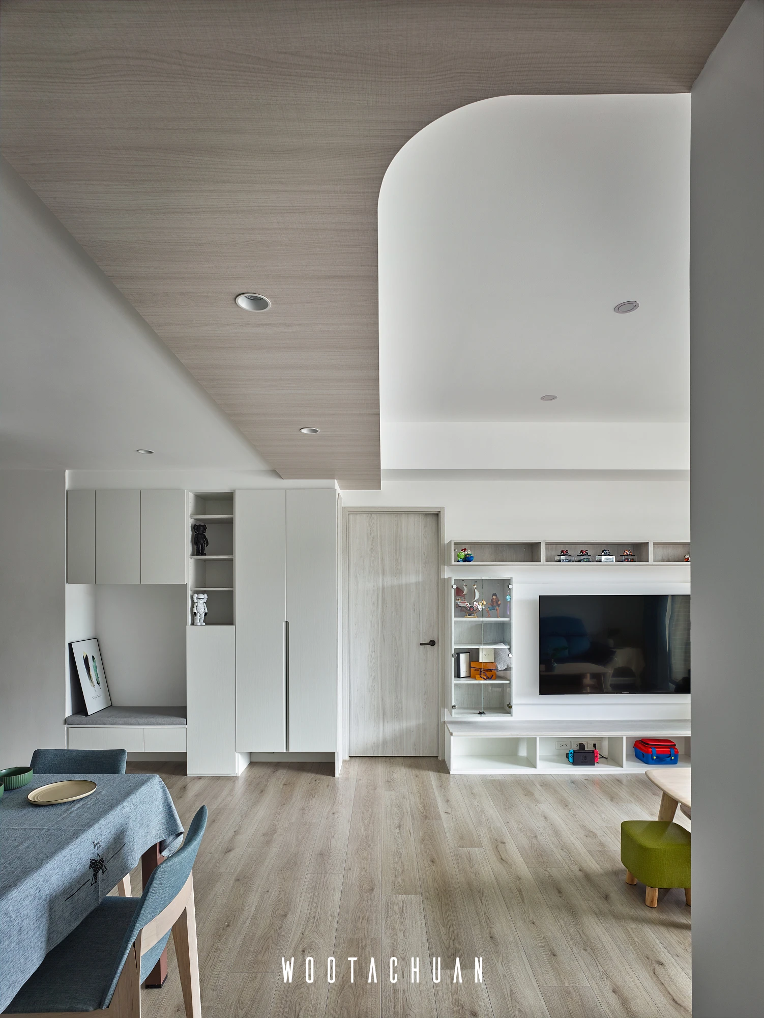 此案件規劃系統櫃為主體 但全屋都是系統櫃的情況下 會很呆板 。
