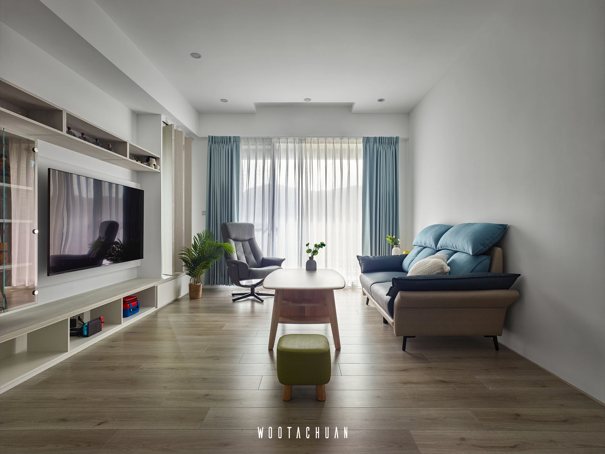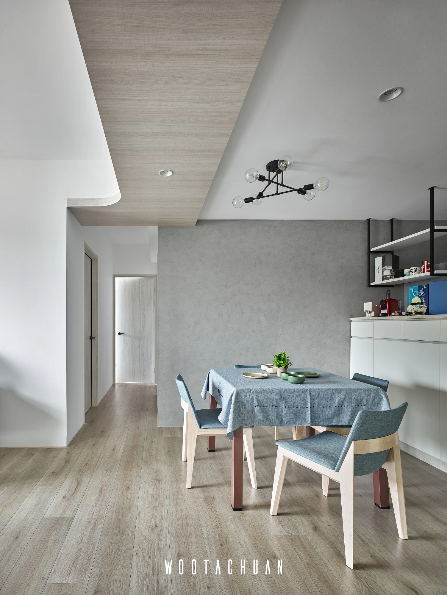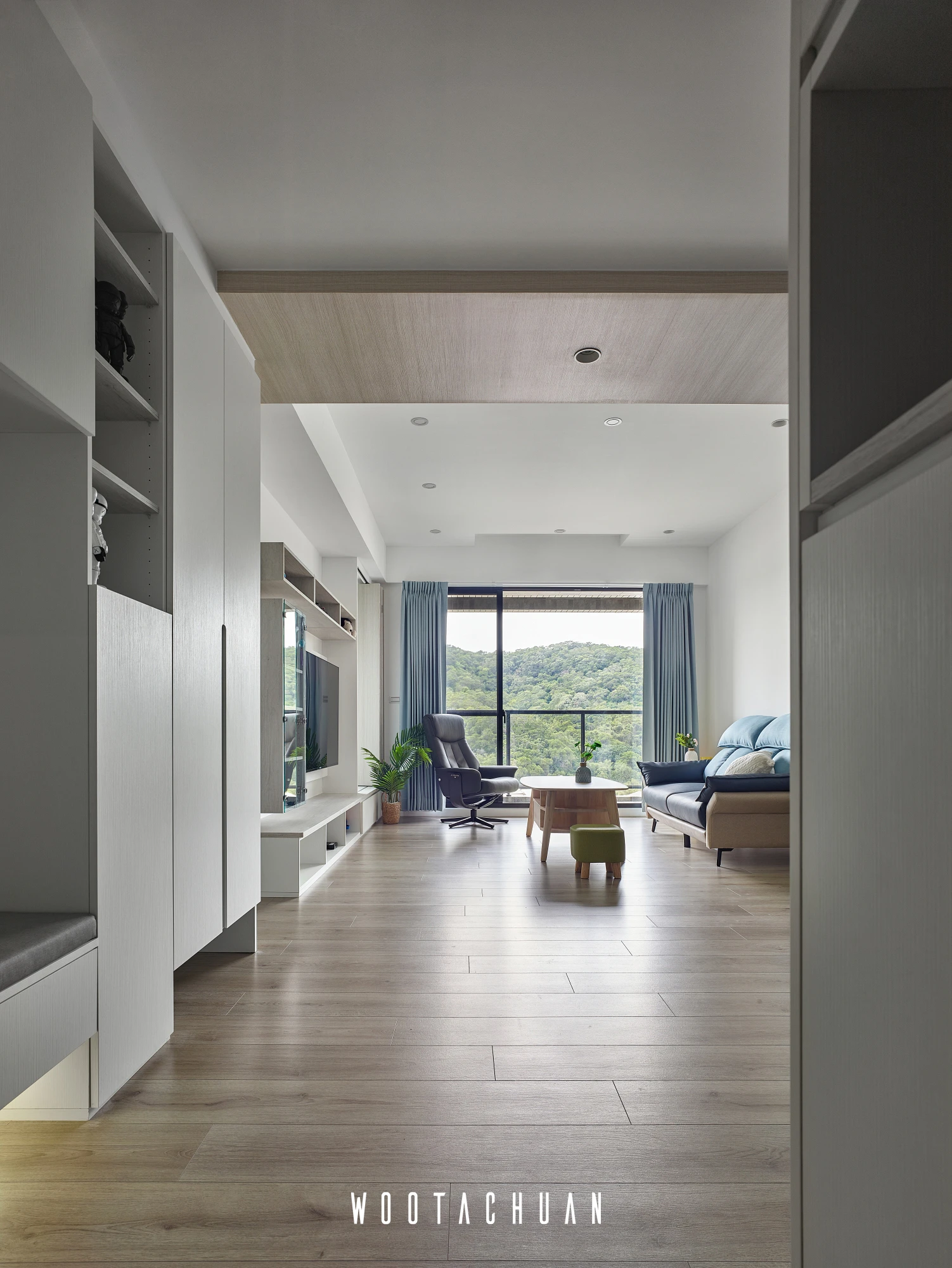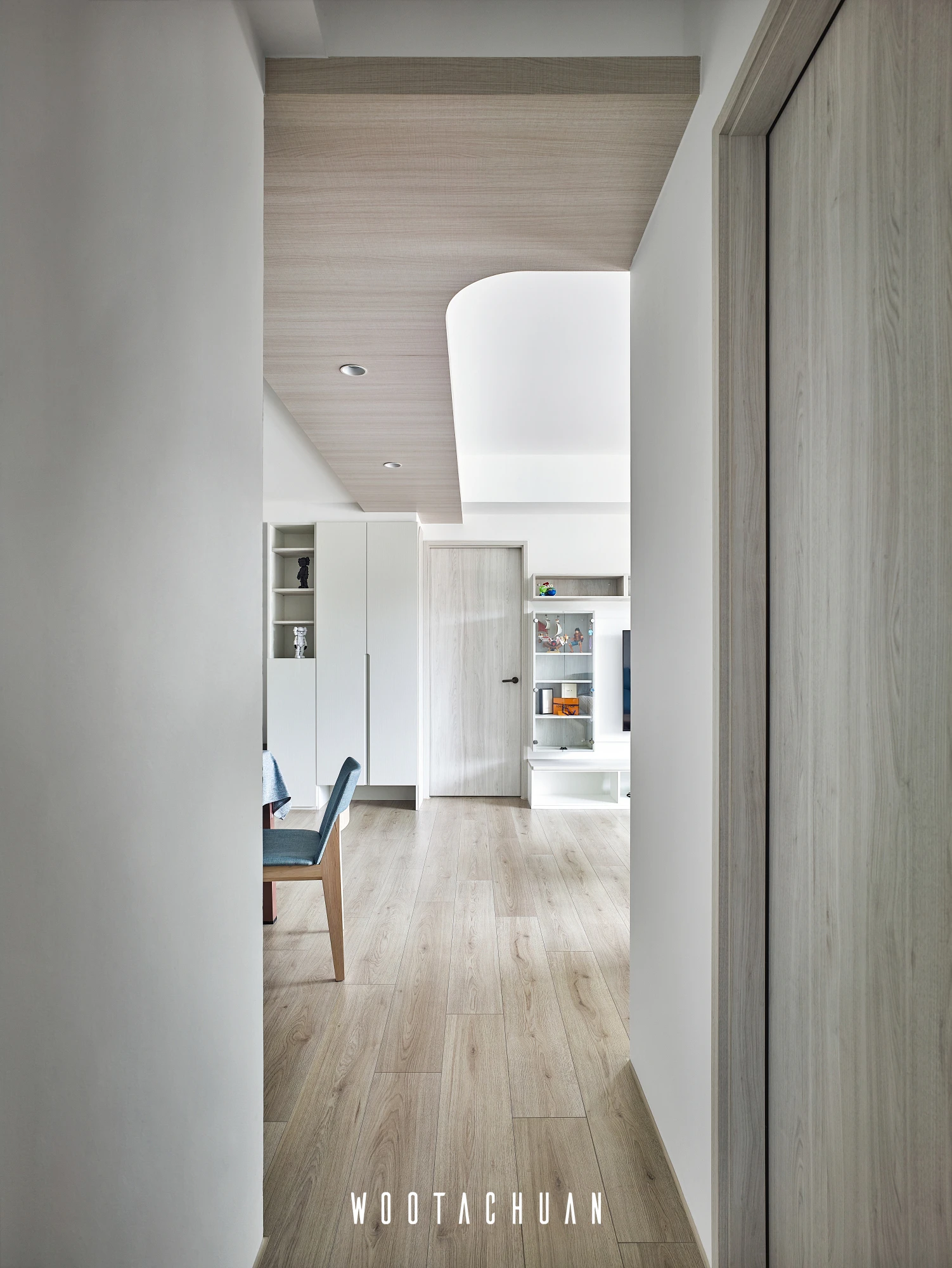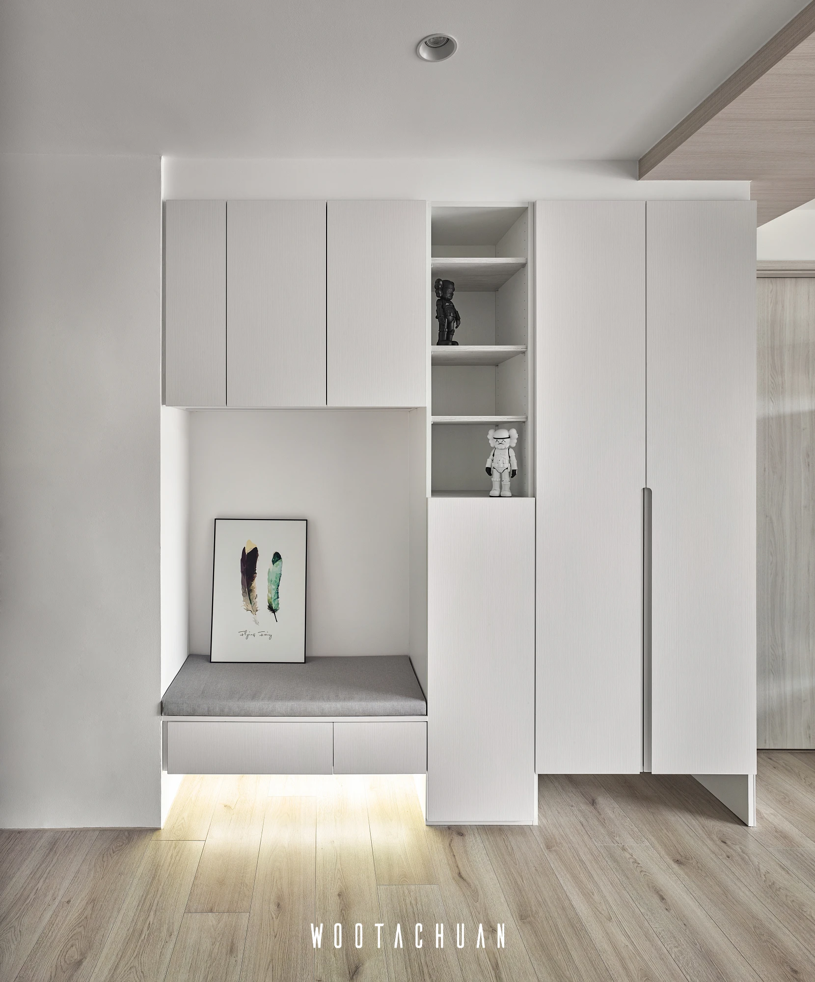 此案件規劃系統櫃為主體 但全屋都是系統櫃的情況下 會很呆板 。