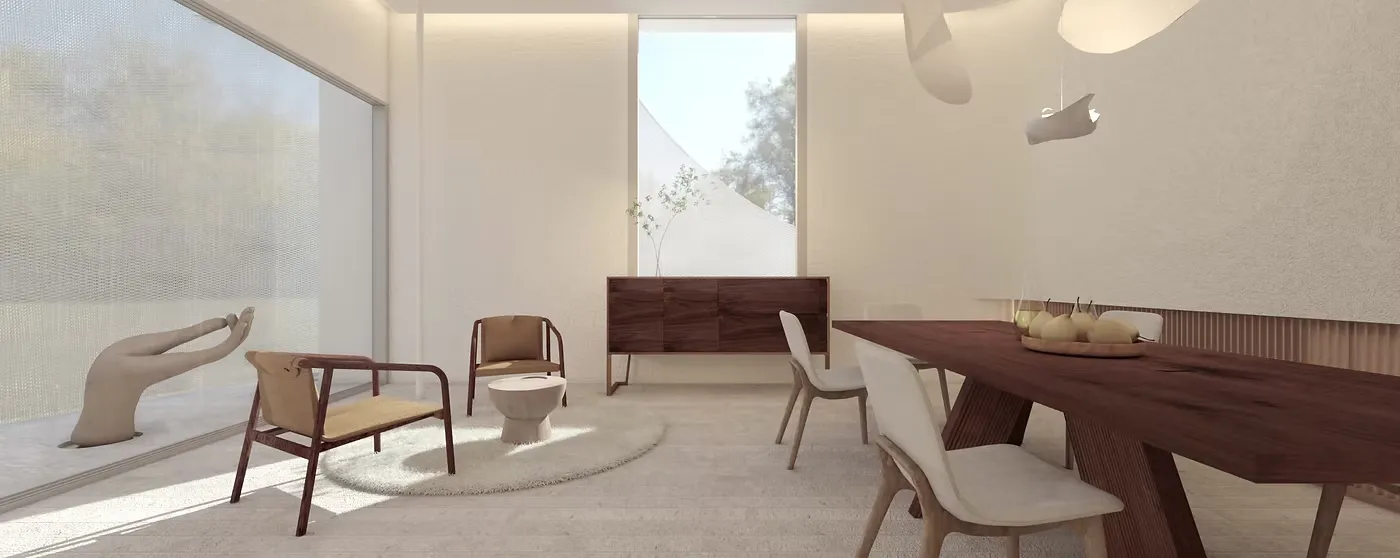 空間作為人類感官的交匯點,在設計上,我們回應了「六根六塵」的概念,試圖創造一個多感官整合的場所。設計不僅追求視覺的簡約與美感,更希望空間能隨時間與場景的變化,融入聽覺與嗅覺的層次感,甚至觸覺的細膩體驗,帶來更為深刻的感知共鳴。