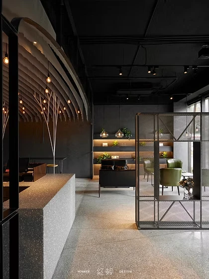 In terms of the static expression of the interior, the design team utilized glimmered lighting and tree shadow to orchestrate spatially a place that people can meander or pause, and in terms of dynamic effects, installed fabric with ventilated air, complemented by positioned lighting, created a visually glimmering effect of light wind accompanying falling leaves as it basked in sunshine.