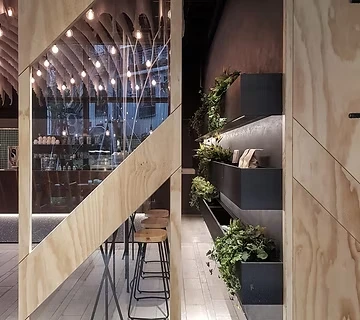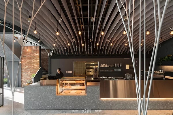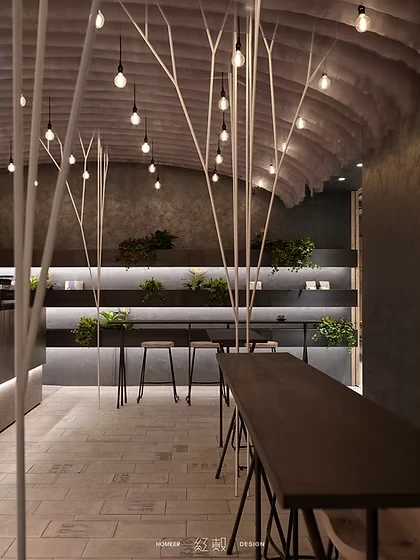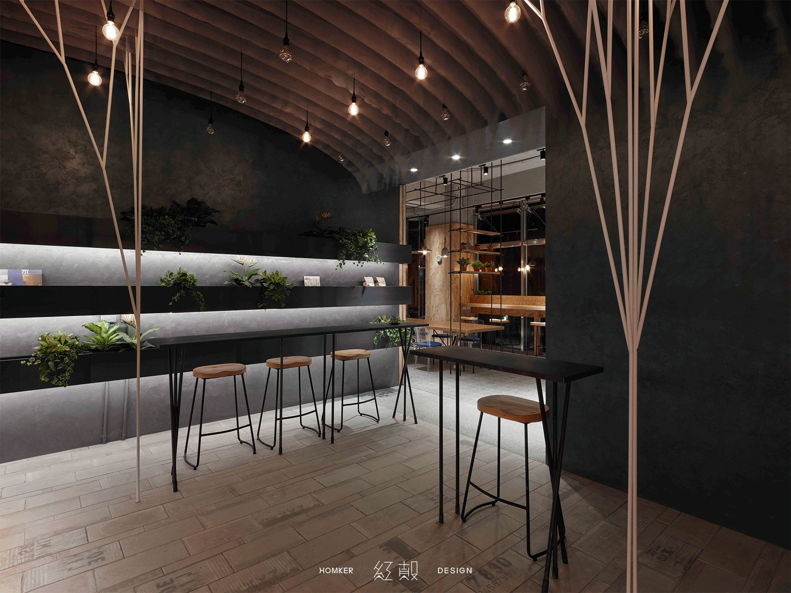 Space should not be of banality, and of pedantic in nature. And the design team aimed at creating a corner café with natural lighting, well-ventilated, greenhouse-like environment, so for people who either walk in or pass by would all experience enriched and fun dynamic visual perceptions.
