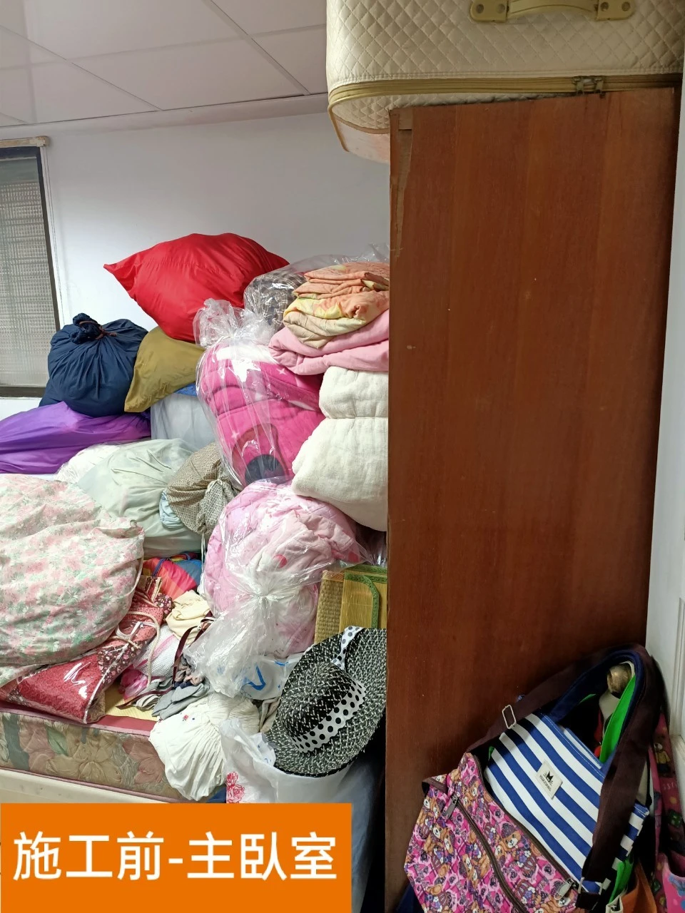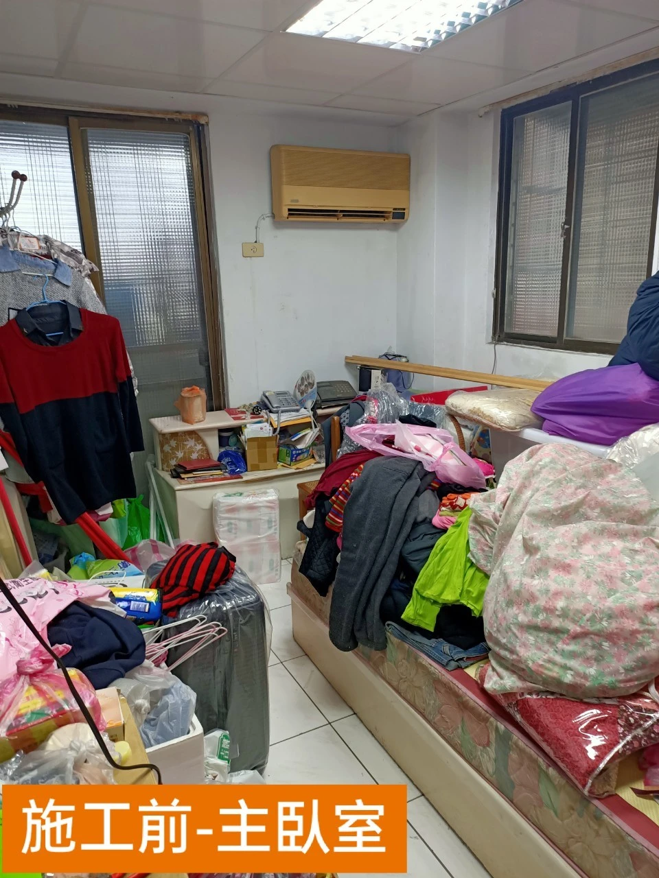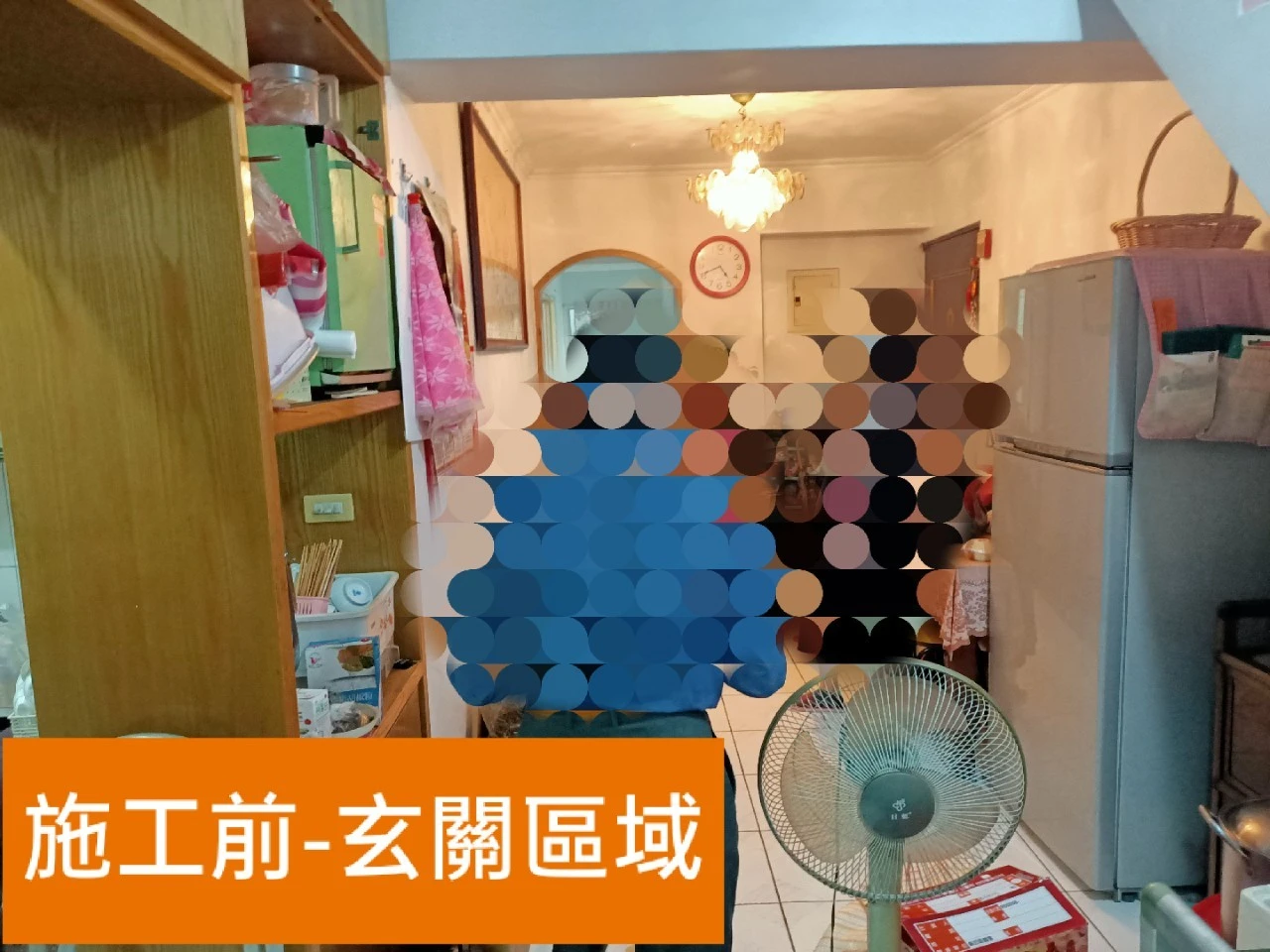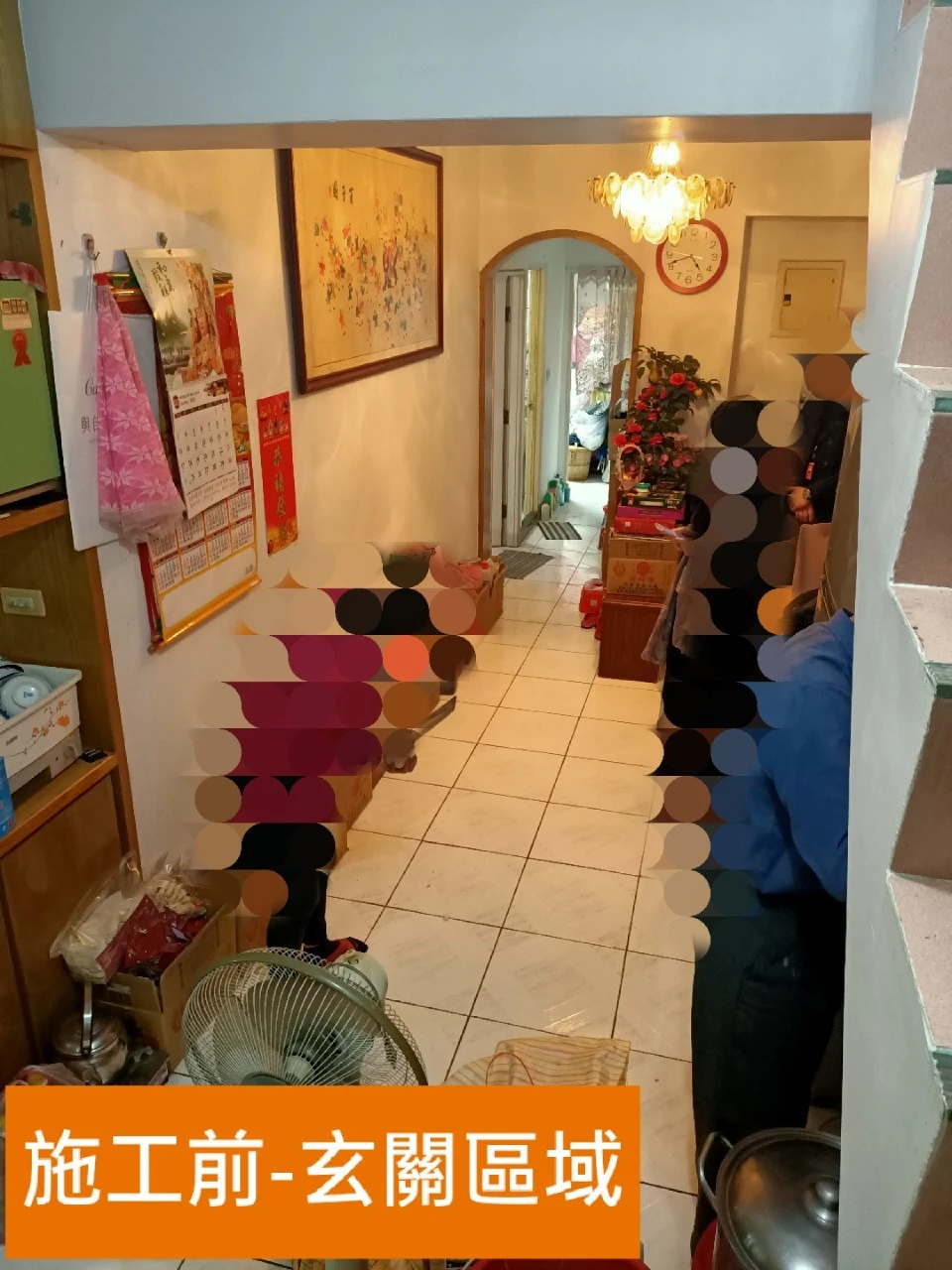 平面空間為17坪的案件,樓梯區域係為通往上層的對內梯佔據下層的室內空間,同時影響入門玄關區域動線,由於屋內收納空間不足的因素,原屋主在走道及臥房有堆積如山的雜物。