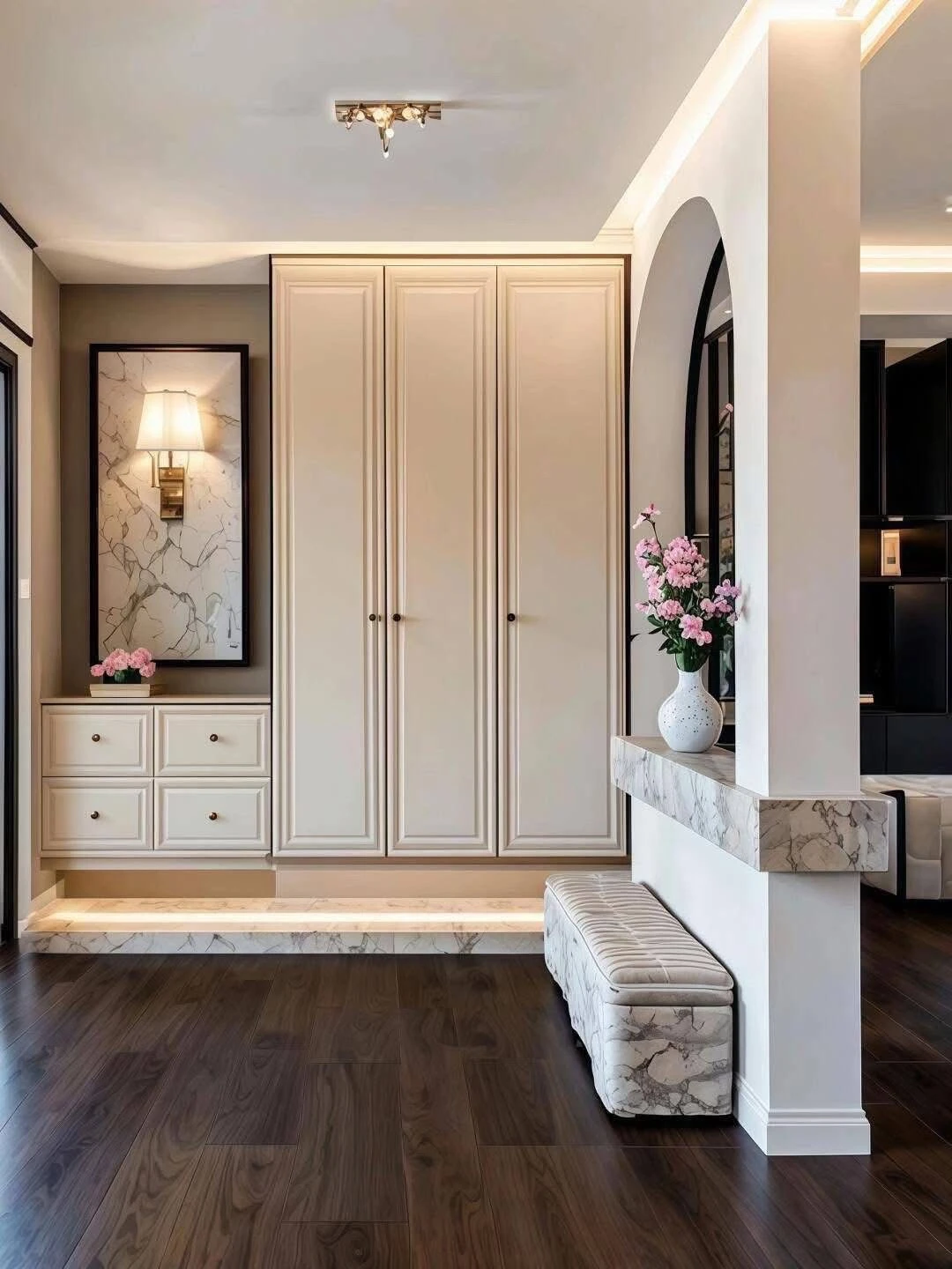 透過沉穩的色調、簡潔的配置, 與恰到好處的留白, 讓光線柔和落下,環境自然安定。
