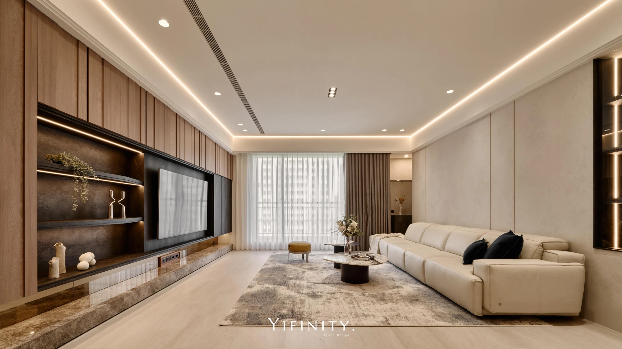 透過隱藏式收納、幾何燈飾與鏡面延伸手法。 現代風不僅展現設計的精準比例,更為居住者帶來明亮、流暢與極具品味的居家體驗。