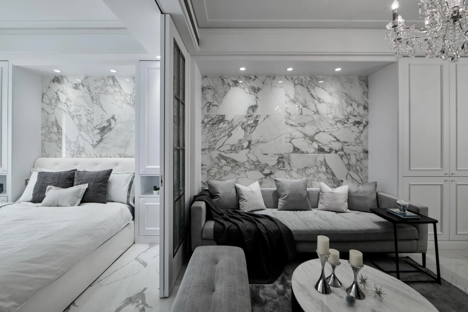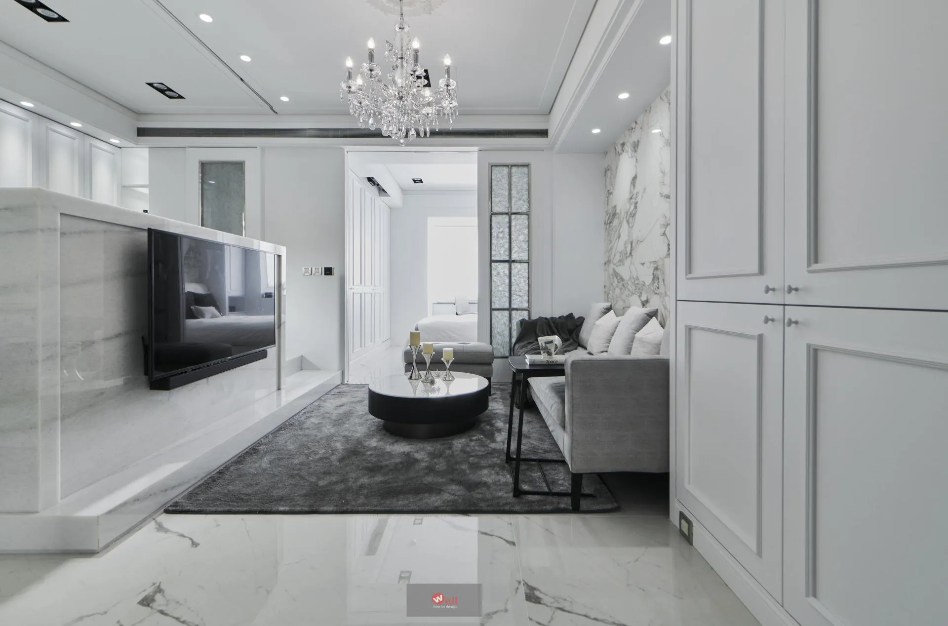 This project is a newly built 54-square single-story residence. In consideration of the simple way of life of the residents, the project proposal was developed based on the clients’ preferences: the project includes multifunctional areas that appeal to practicality, crystal lamp details and a boutique hotel atmosphere that soothes the body and mind; in terms of execution, precise proportions and various shades of black, gray and white materials in warm, natural textures are integrated with lines in the style of new antiquity, creating consistency through similarity in design vocabulary, cleverly expanding the depth of field to enrich visual perspectives, and carefully crafting into a romantic low-key luxury residence centered around elegance and lifestyle.