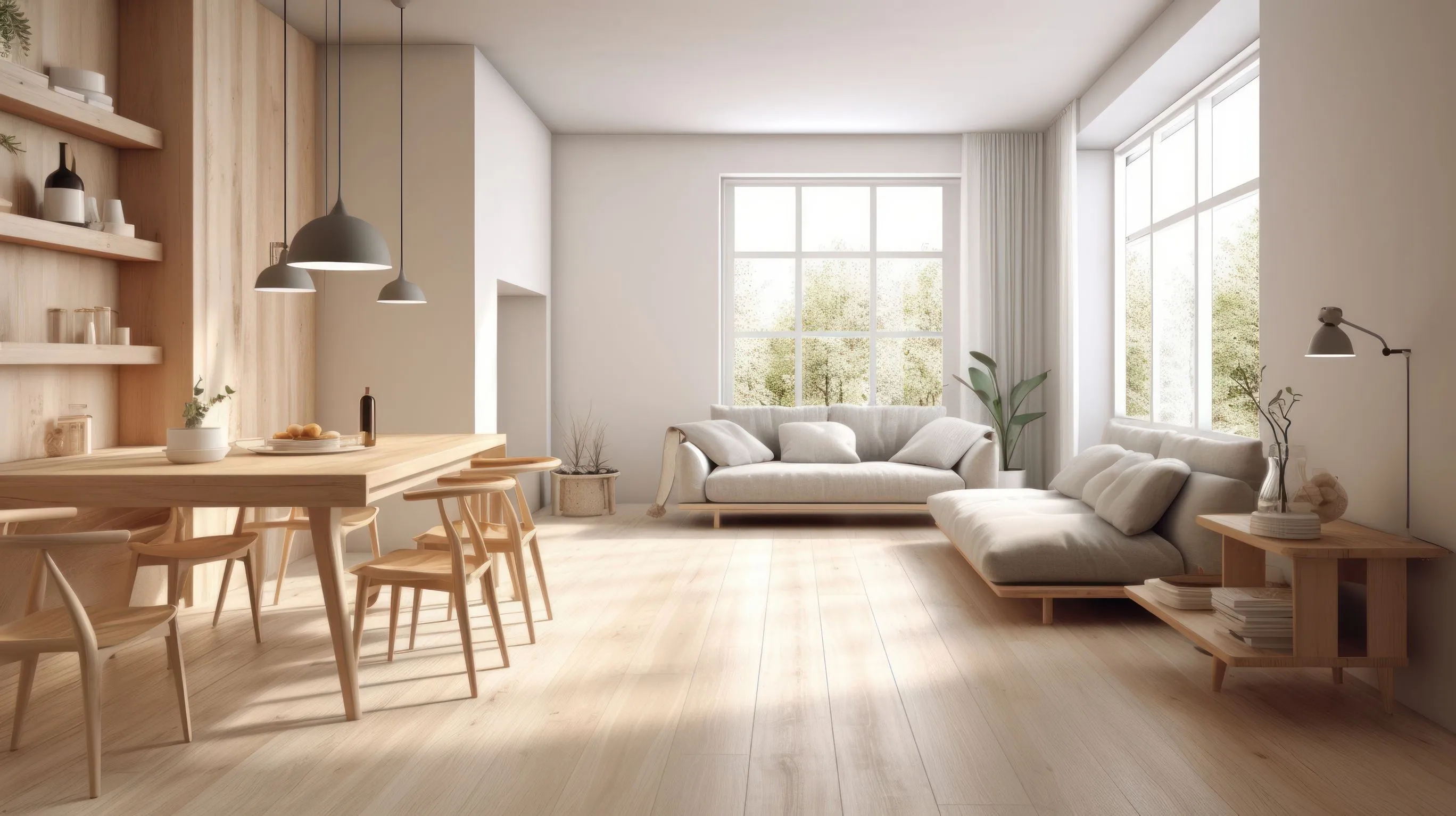 若希望空間呈現較溫潤的木質氛圍,超耐磨木地板是許多住宅的熱門選擇。