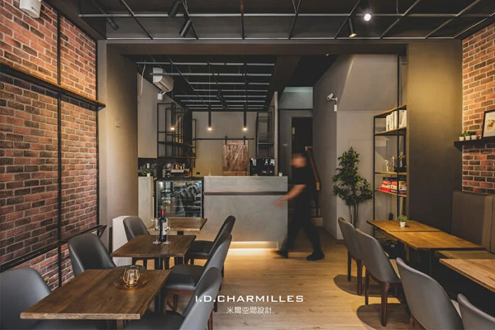 以胡桃木色系為主凸顯沉穩與質感,咖啡廳作品採用了文化石、鐵件、穀倉門、吊架、藝術塗料,展現了獨特高級的工業風,以及猶如置身於國外的異國氣息,紅色文化石帶給人如畫作般,又十分有家的氣息,可以讓咖啡廳顧客有寧靜安心的感覺,天花板搭配黑色鐵件交錯,與暖燈光的設計,既摩登時尚,又巧妙無違和的融合了在一起,可以說像座燈塔一樣,在外面工作生活忙碌,但是總有一處地方像家一樣永遠等在那裡,為我們帶來希望與光芒,泥巴水咖啡廳可以說是這樣的存在與禮物。