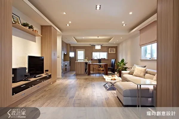 一家四口如何在 21 坪的夾層空間中過清爽無壓的生活?耀昀設計保留光線,運用大量的明亮系又能結合溫度的材質打造,運用系統櫃的俐落創造出足夠的收納空間,讓 21 坪的空間變成小確幸的北歐宅。