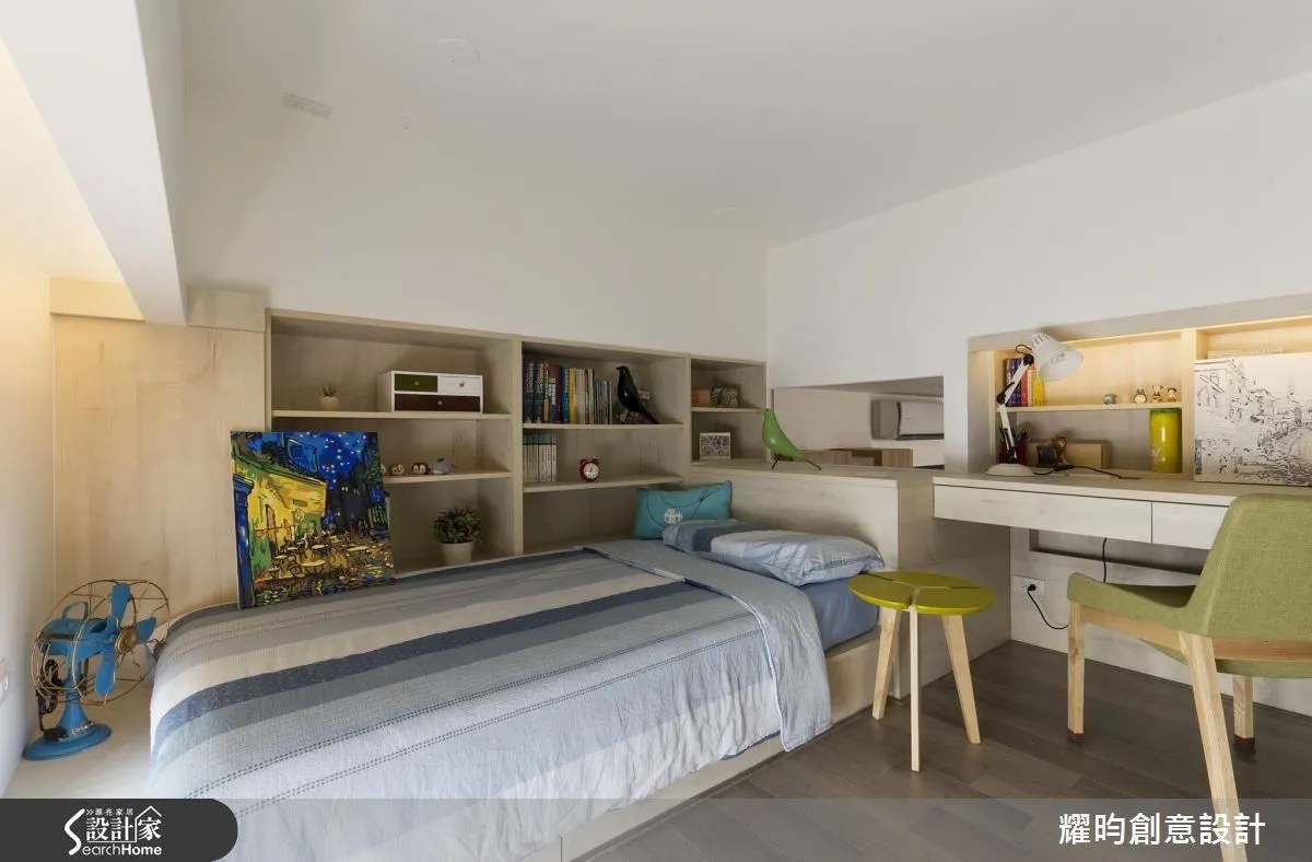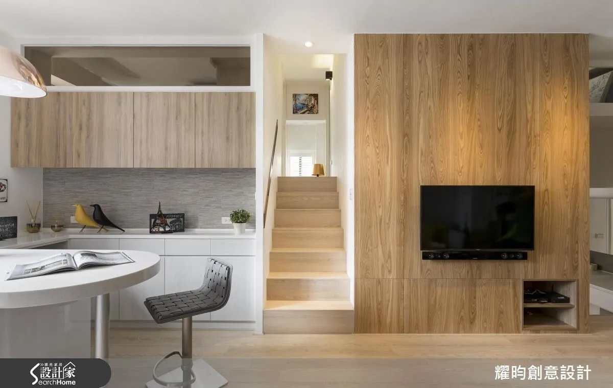 一家四口如何在 21 坪的夾層空間中過清爽無壓的生活?耀昀設計保留光線,運用大量的明亮系又能結合溫度的材質打造,運用系統櫃的俐落創造出足夠的收納空間,讓 21 坪的空間變成小確幸的北歐宅。