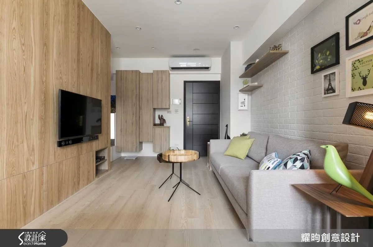 耀昀設計強調,由於屋主喜歡清爽的北歐風格,因此選擇淺色的超耐磨木地板,電視牆以貼木皮的方式平衡以白色為主的空間溫度。收納空間上,進門右手邊的設計櫃體,不僅創造出小小的設計感,實用上也同時能擺放鑰匙和鞋子,讓玄關無形中成型。儘管是兩姊妹居住時間多,但收納空間也不能馬虎,在樓梯旁有間可以充當儲藏與客房的小臥室,讓兩姊妹的雜物收得乾乾淨淨。一字型的開放式公領域,以灰色系或大地色系的家具,搭配文化石沙發背牆,讓整個空間充滿了小確幸,可以說是一間溫暖又清新的小住宅。