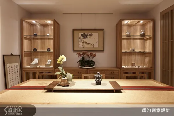 藝術品擺放的最佳位置在於在作為端景的牆面,簡約木質櫃體搭配合適的燈光,創造吸睛的視覺效果。