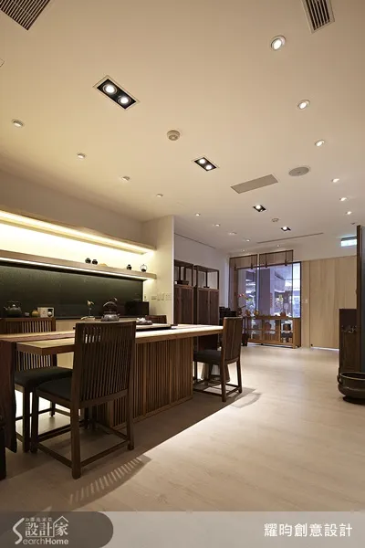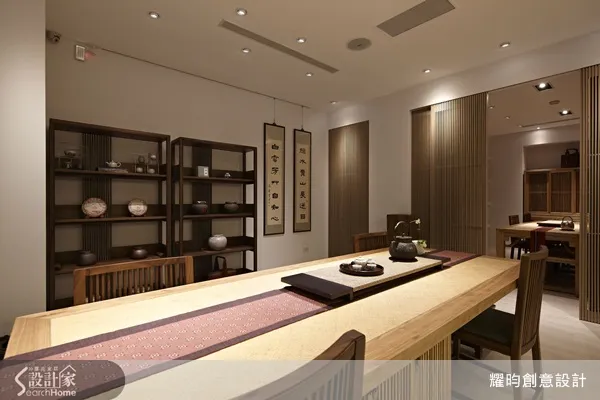 本案位於台北市士林,是一間由日本茶道老師授課的茶道教室以及販售高檔茶葉的商業空間,從事房地產的屋主也希望能將此空間作為招待親友客戶的會所,以培養自己的人脈關係。屋主希望能跳脫已往嚴謹保守的傳統日式風格,並且注重空間質感與舒適度,因此,設計師便以淺色木建材以及溫暖柔和的燈光設計,營造明亮清爽的舒適氛圍。在設計師巧妙的安排之下,屋主珍藏的藝術品與空間相互搭配,彼此相輔相成,展現沉穩內斂的人文氛圍,屋主表示喜歡這些藝術品的客人,也能將它買下帶回家。在門面上的設計上,希望一眼就能讓客人感受到質感與品味,因此設計師在門面上加入許多的巧思。