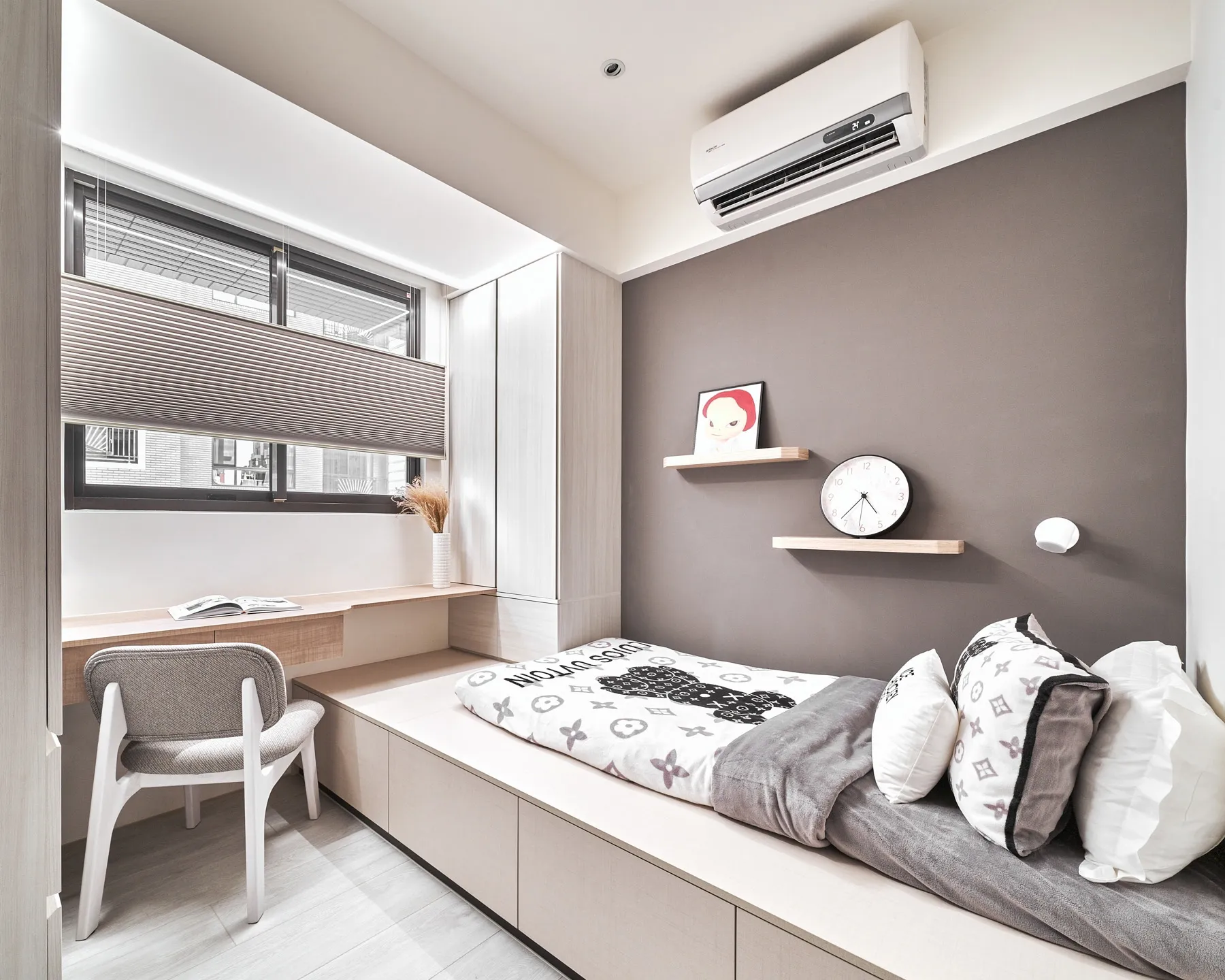 臥室裡,床往往佔掉最大面積。如果只是單純擺放床架,那麼底下的空間其實是被浪費掉的。設計師通常會建議規劃成抽屜式或上掀式收納,能將換季衣物、備用寢具或行李箱收納進去。