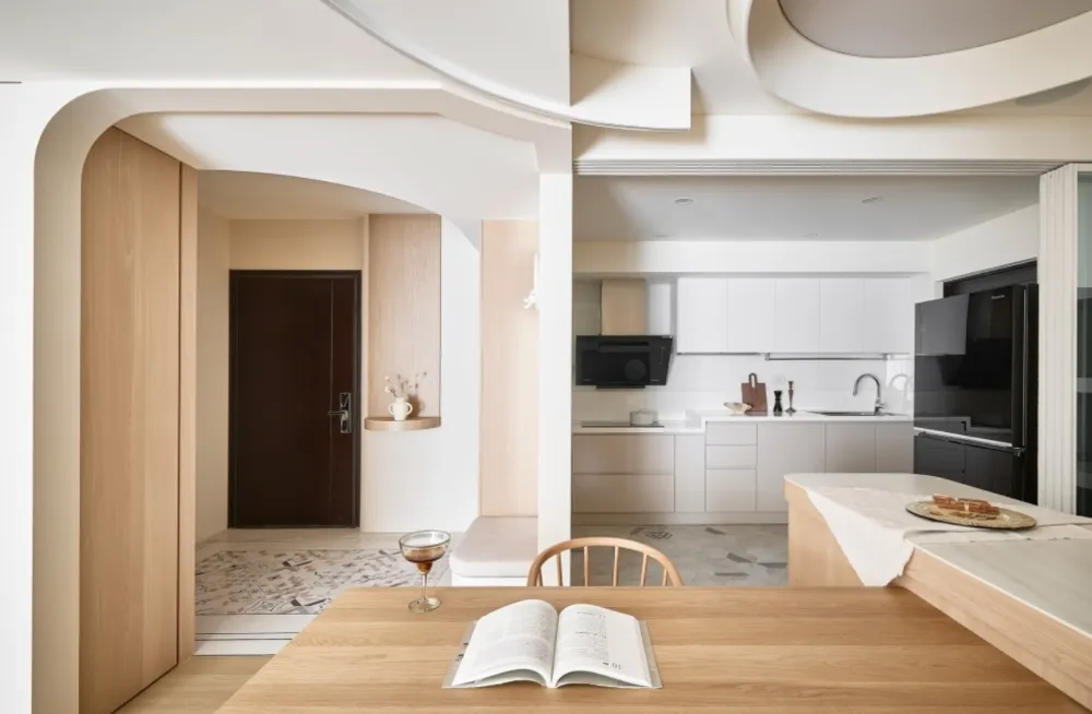 拱門造型:玄關、走道或壁龕使用圓弧拱門,能柔化空間界線,增添浪漫儀式感。